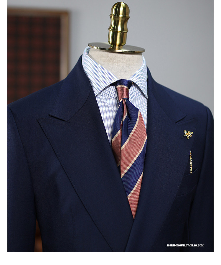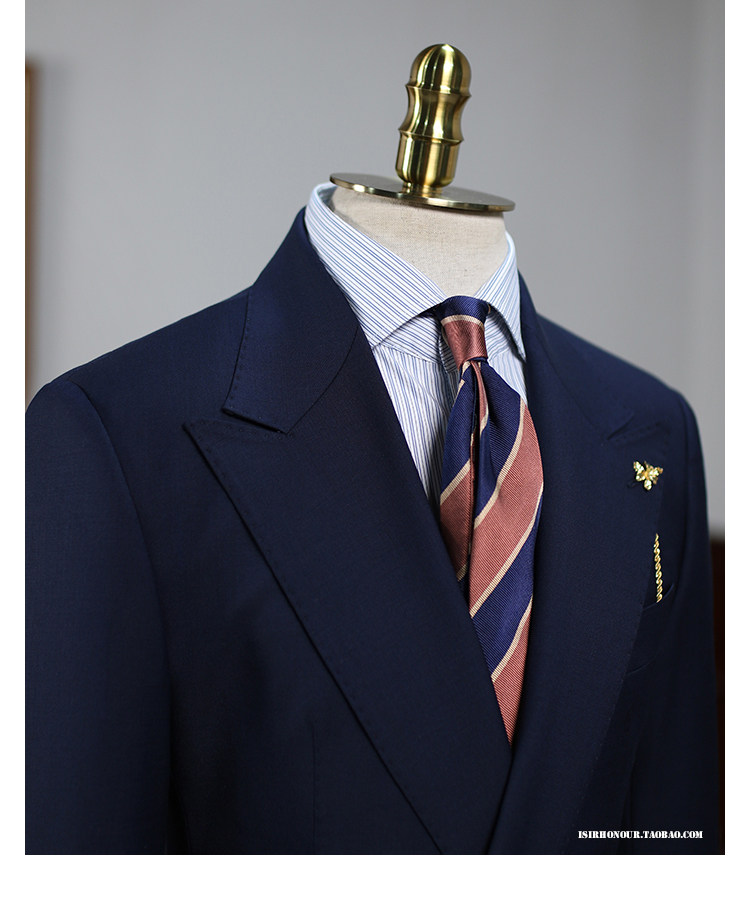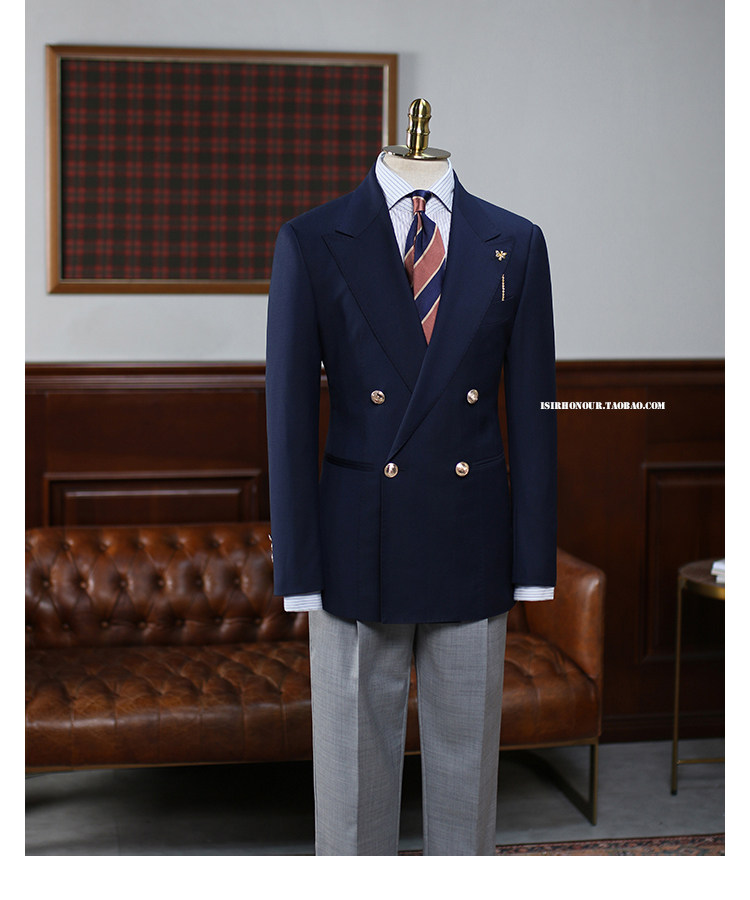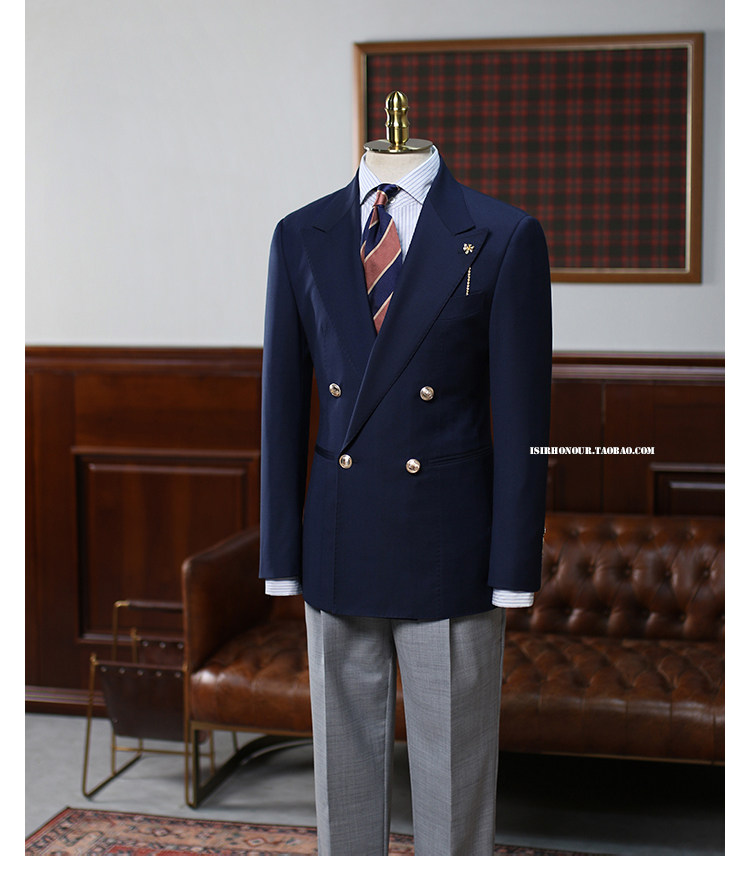 Isirhonour Naval Blue Essence Wool Buderizer Double Row Four Fabrics One Suit Navyblazer костюм