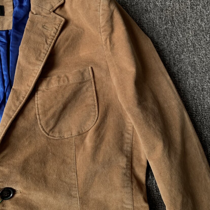 Демисезонный вельветовый цветной модный костюм для отдыха, куртка, облегающий крой
