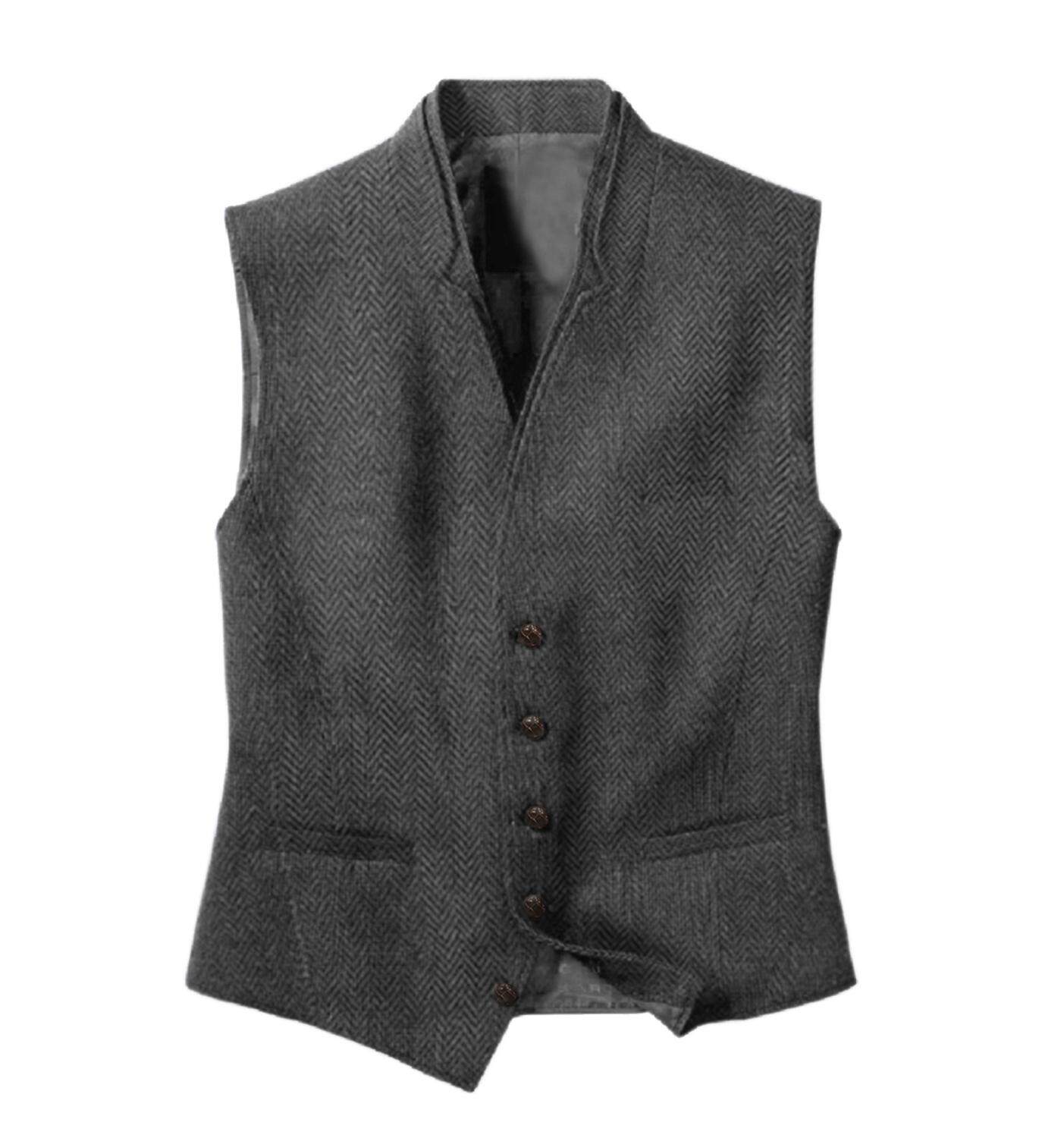 Мужский костюм жилет с двойным воротником v Шерстяная шерсть елочка повседневная