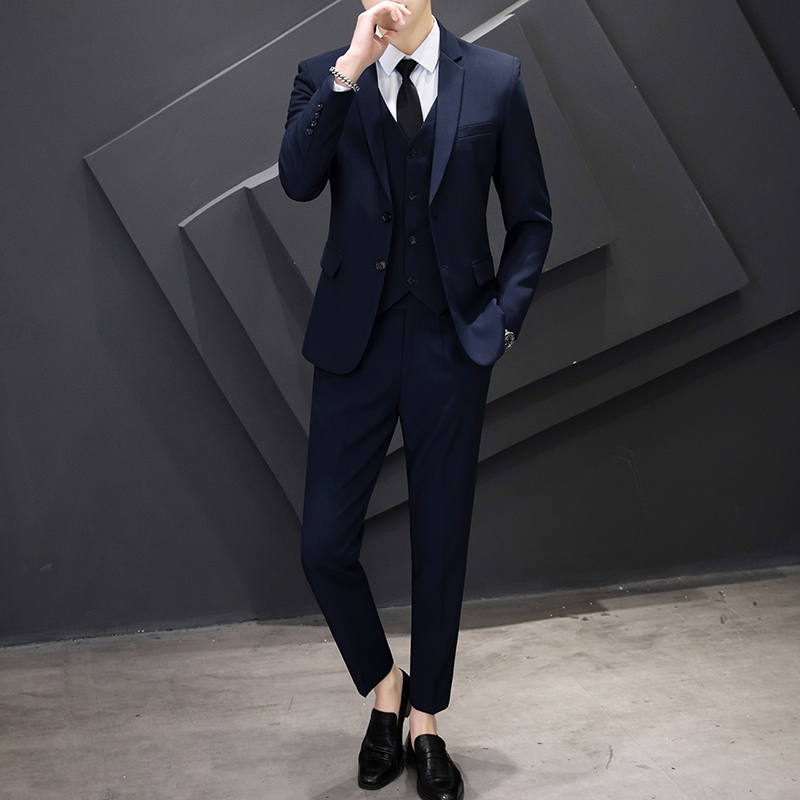 Мужской комплект, свадебное платье для отдыха, пиджак классического кроя, 3 предмета, облегающий крой