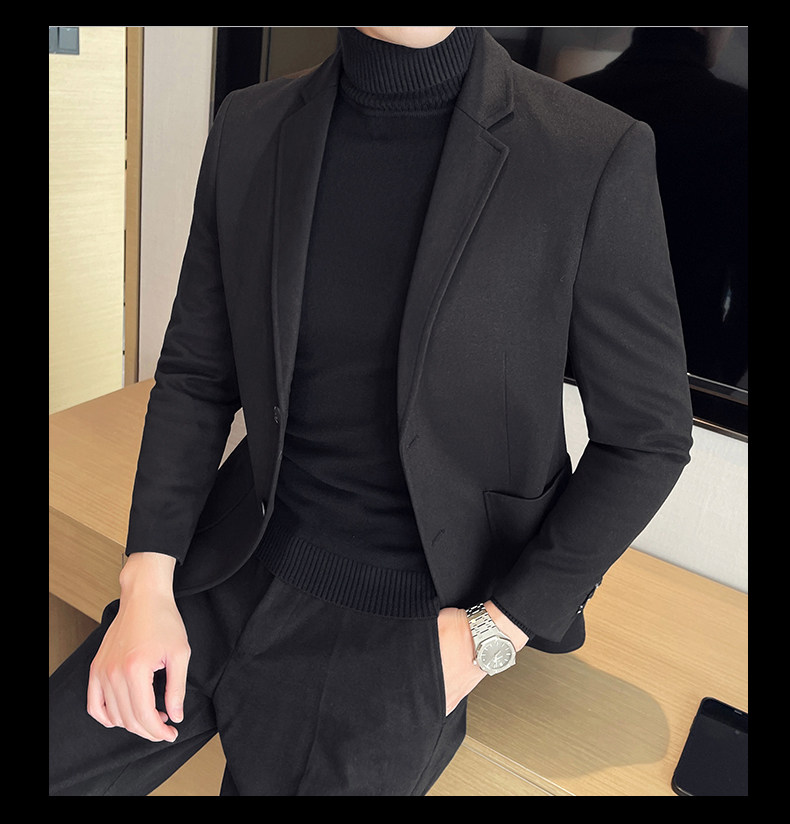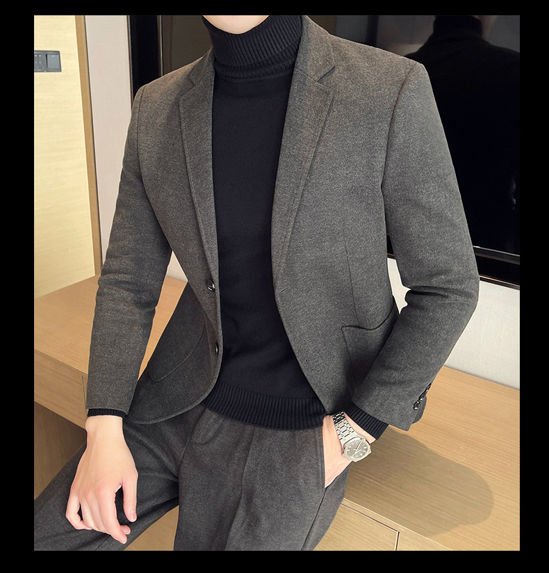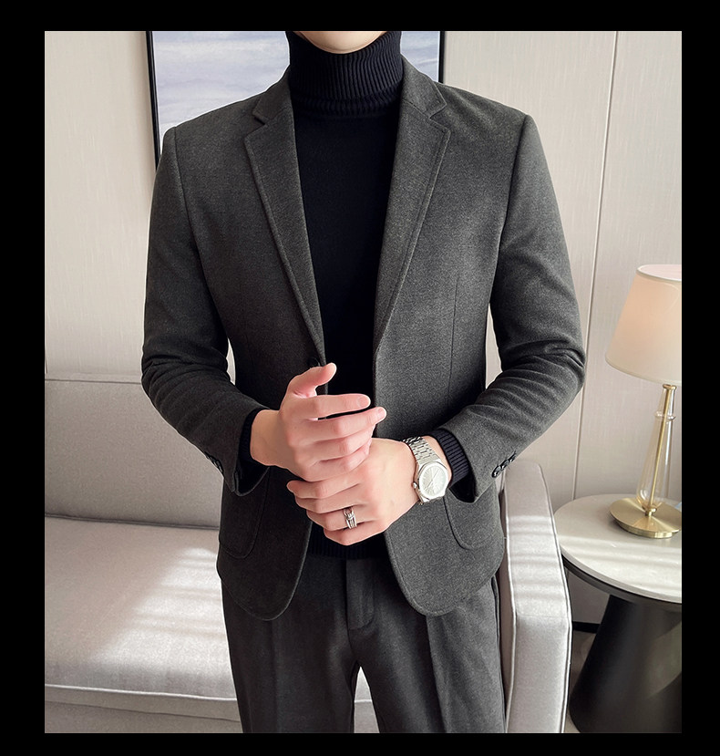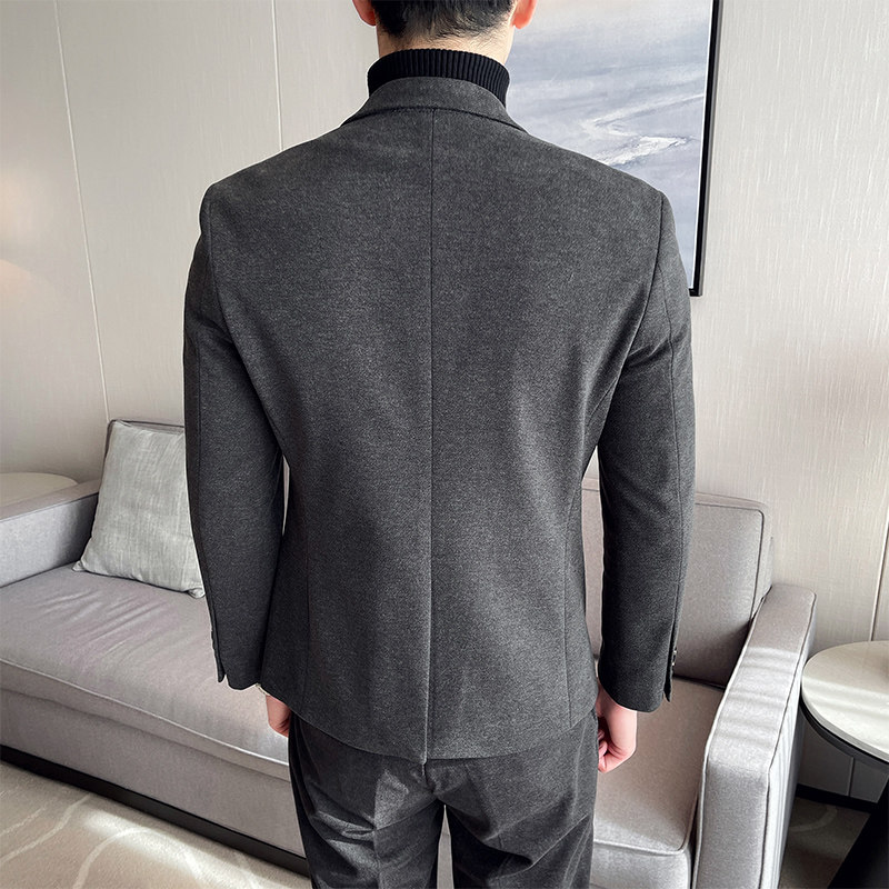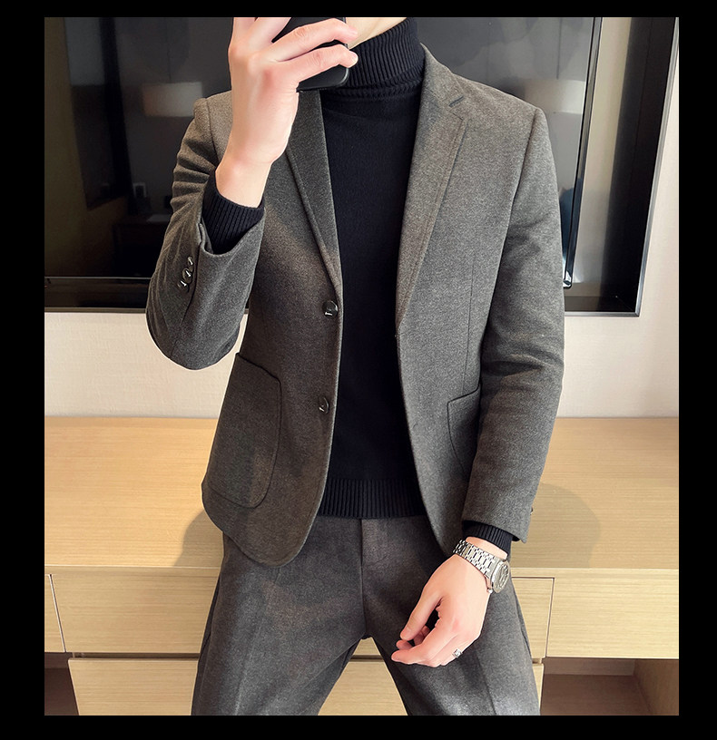 Шерстяной мужской демисезонный костюм, облегающий крой, в корейском стиле, изысканный стиль