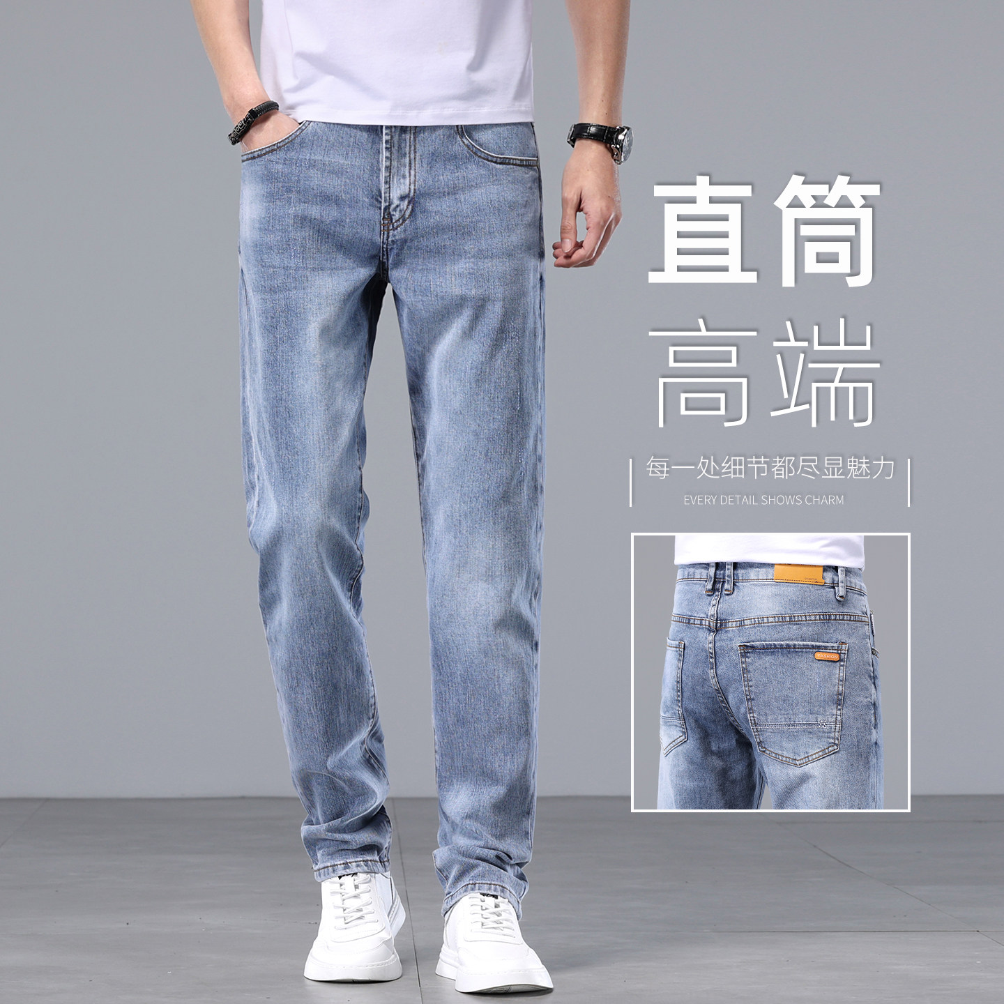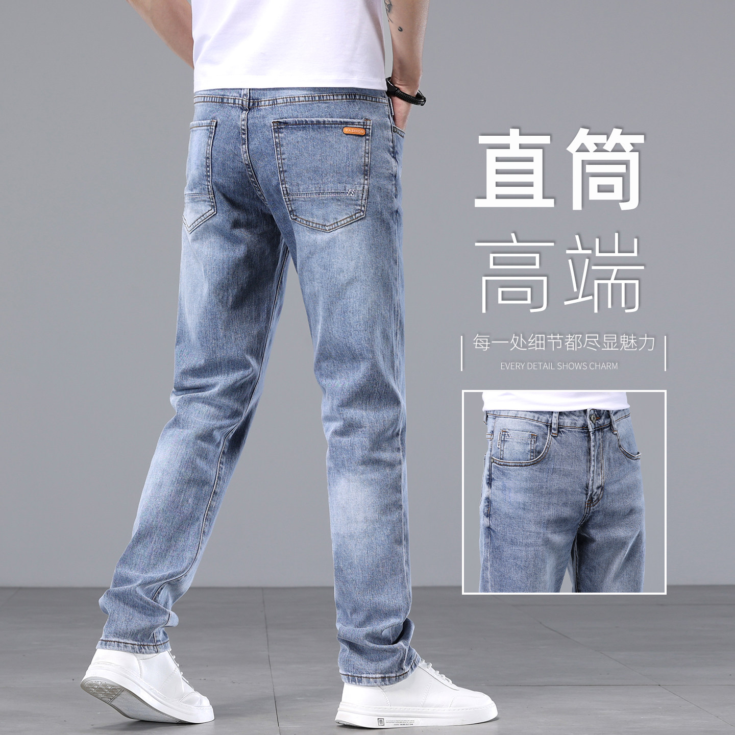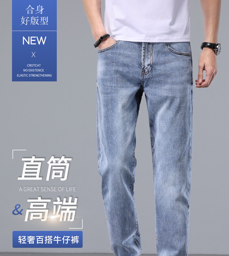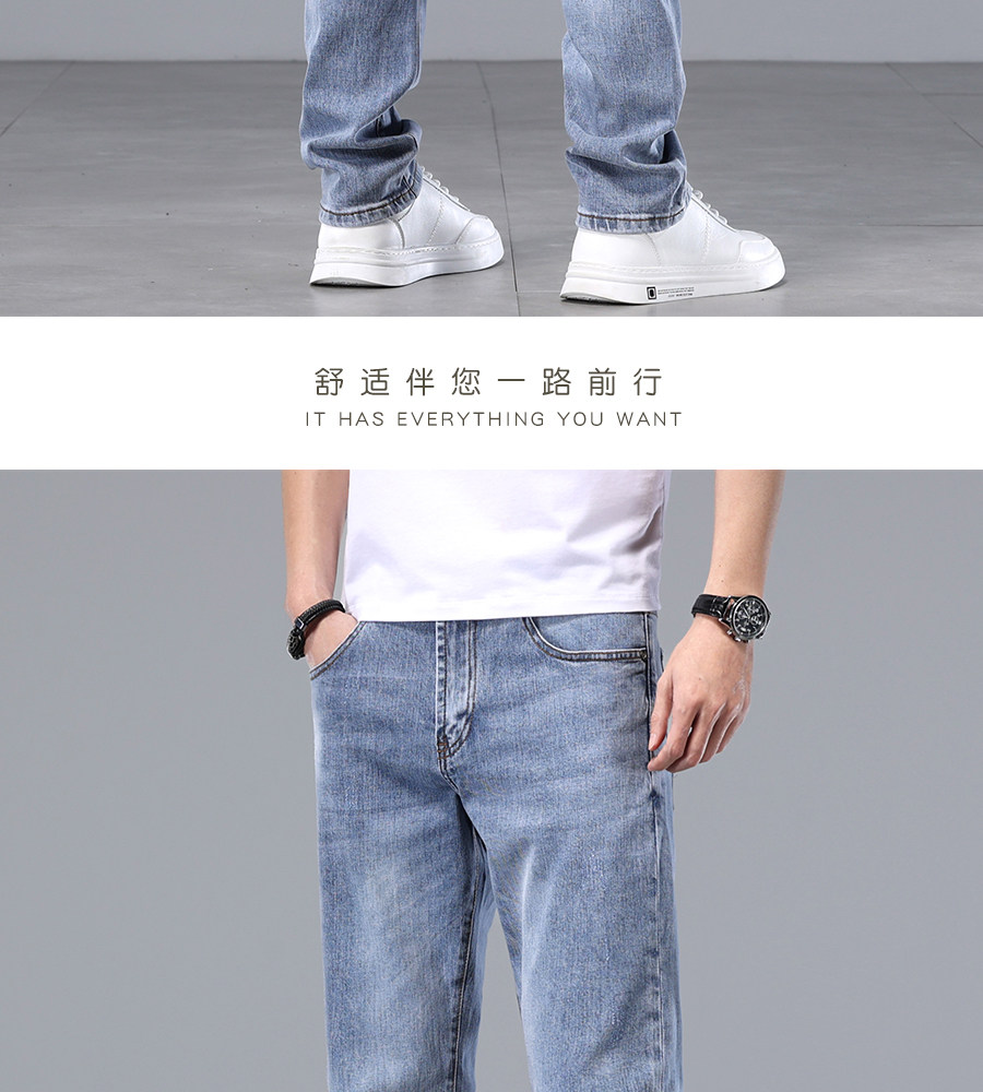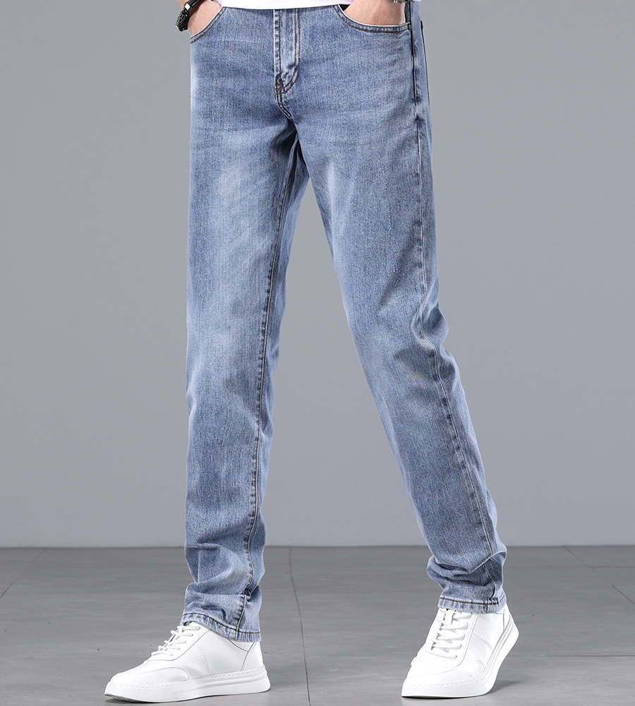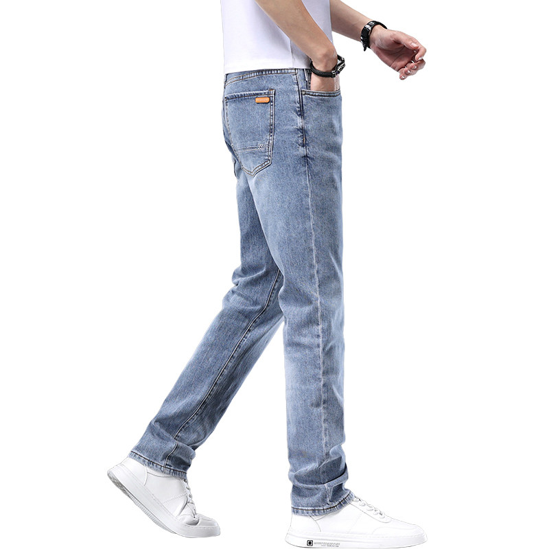 Весенние хлопковые эластичные синие цветные элитные прямые свободные джинсы, летние штаны