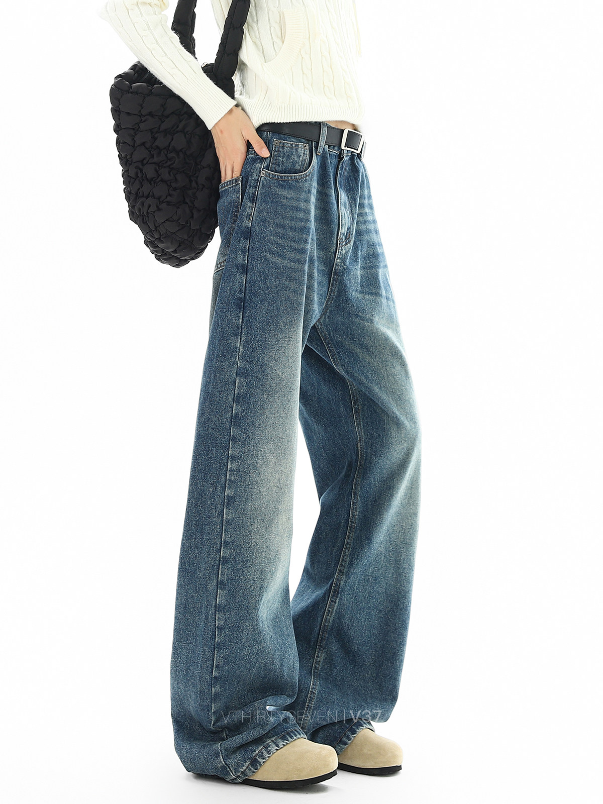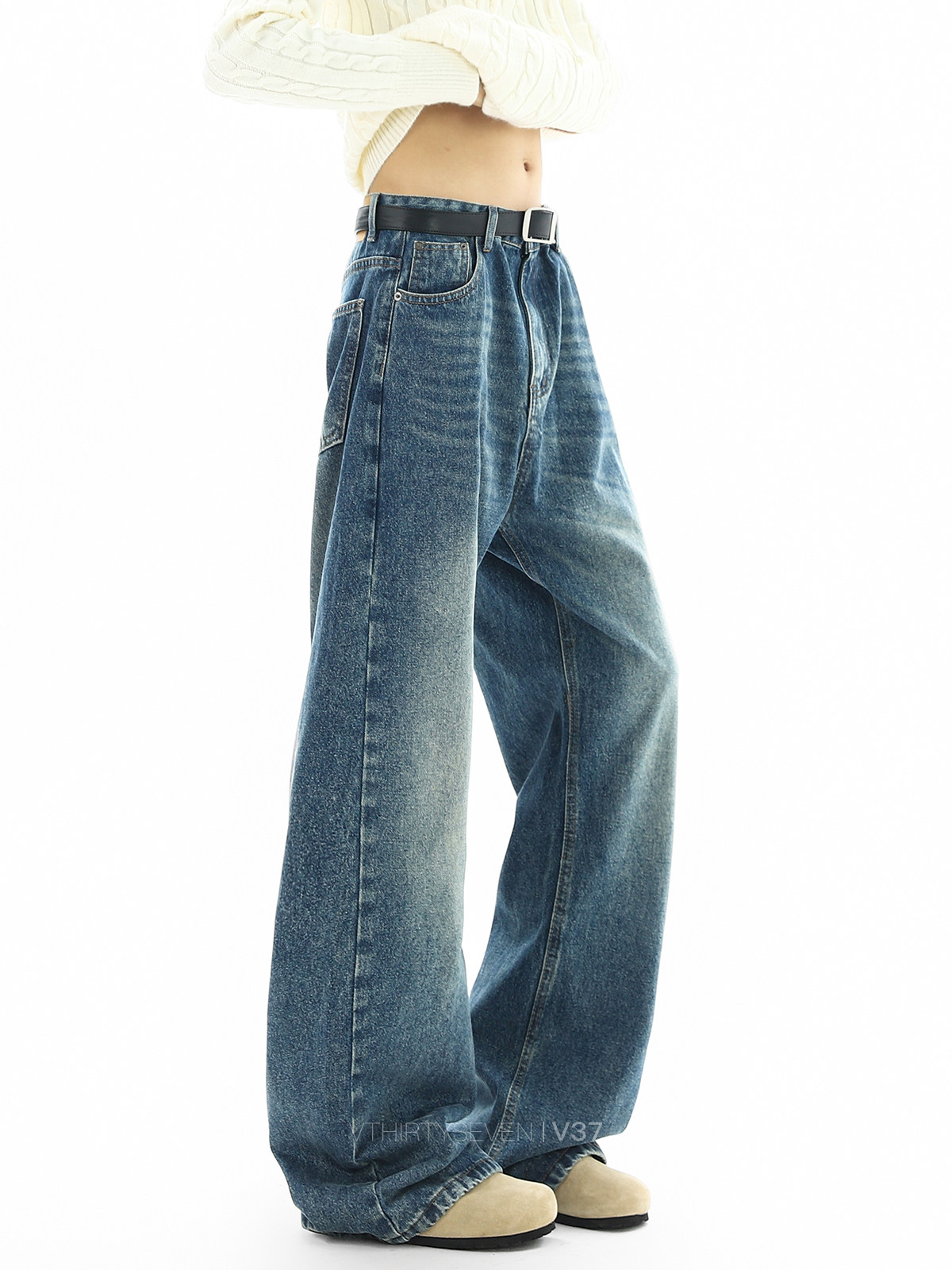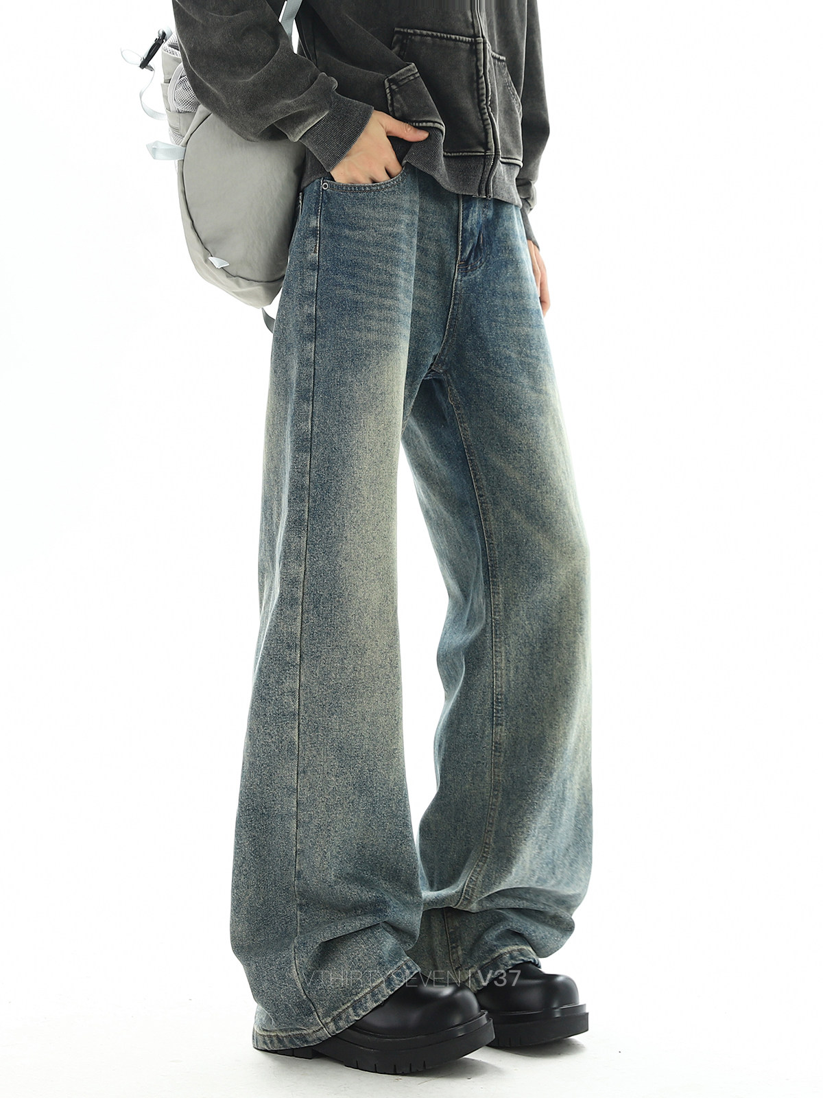V37 Ретро весенние прямые свободные джинсы, штаны, в американском стиле, оверсайз