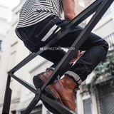 Штаны показаны на разных стадиях окраски после многих лет трения. Это радость воспитания крупного рогатого скота.