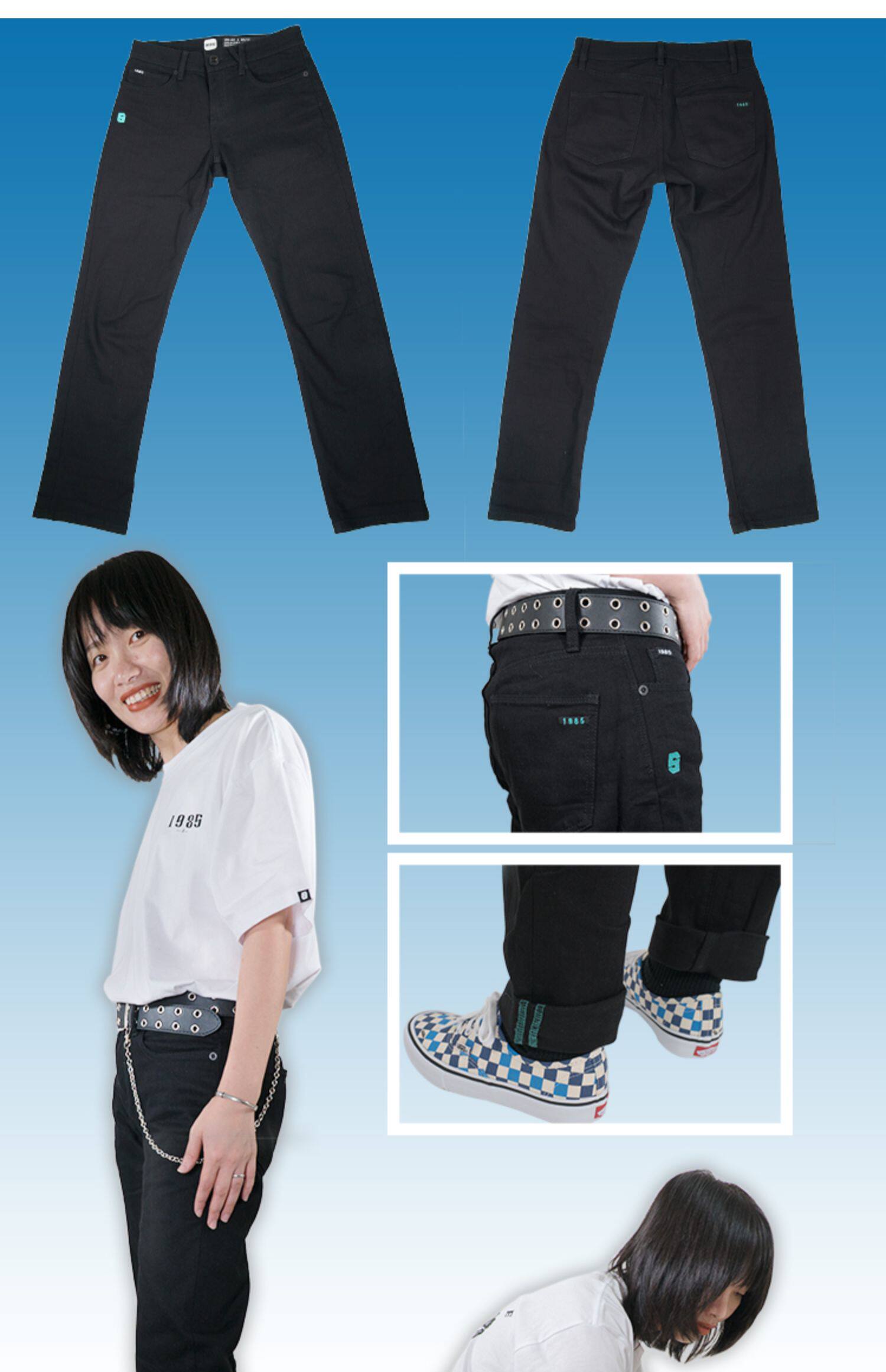 Оригинальный скейтборд, черные штаны, комфортные джинсы, свободный прямой крой