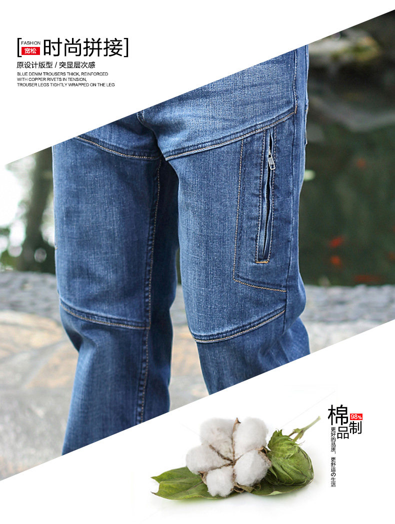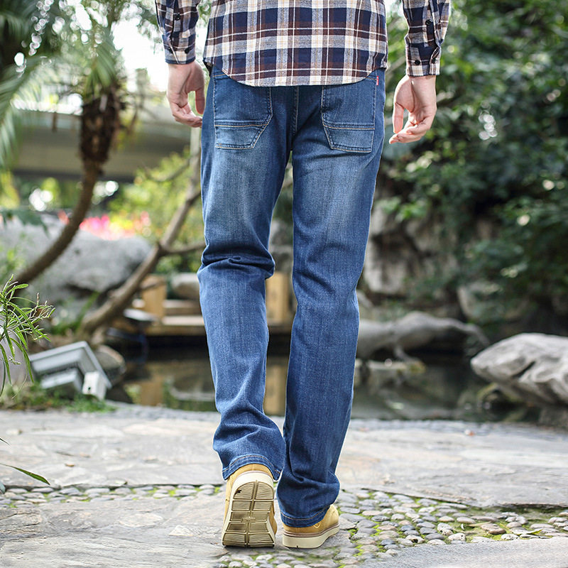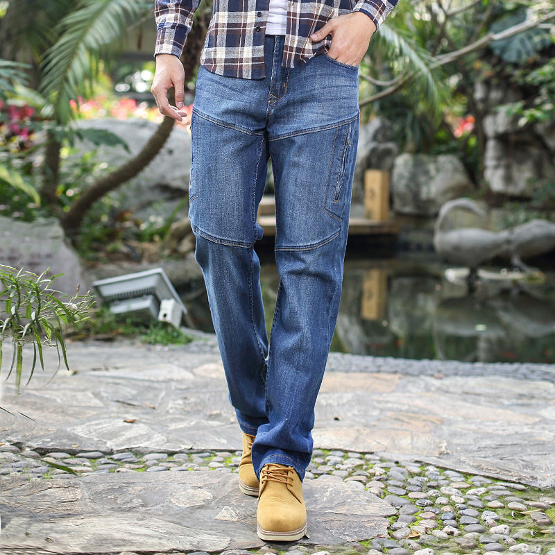 Мужские демисезонные штаны для отдыха с молнией, большие джинсы, свободный прямой крой