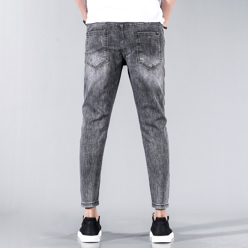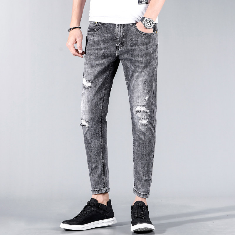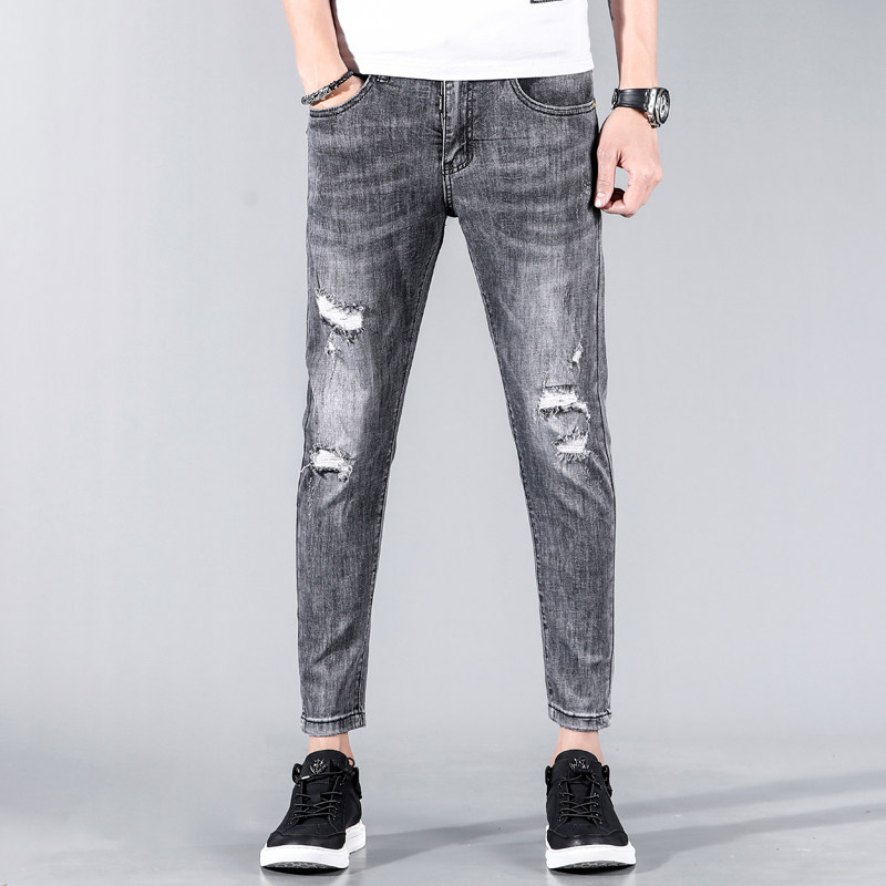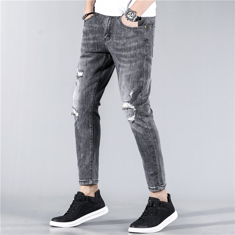 Дым подозреваемый разбитый джинсовой ткань, брюки для нищих, Ся Ян, брюки, текущие и красивые