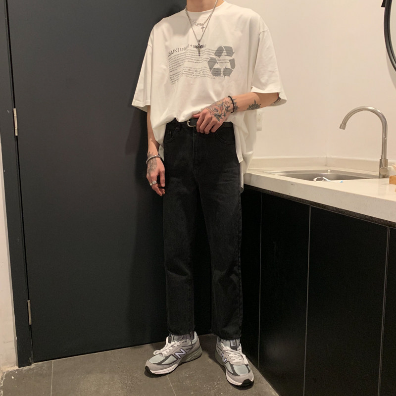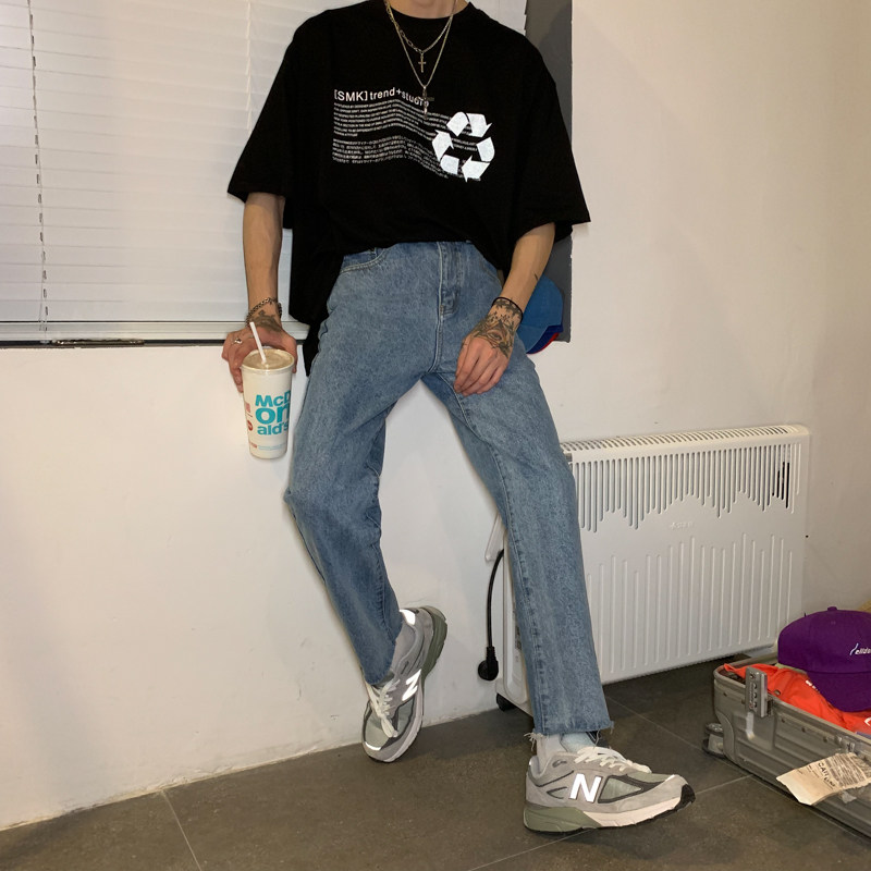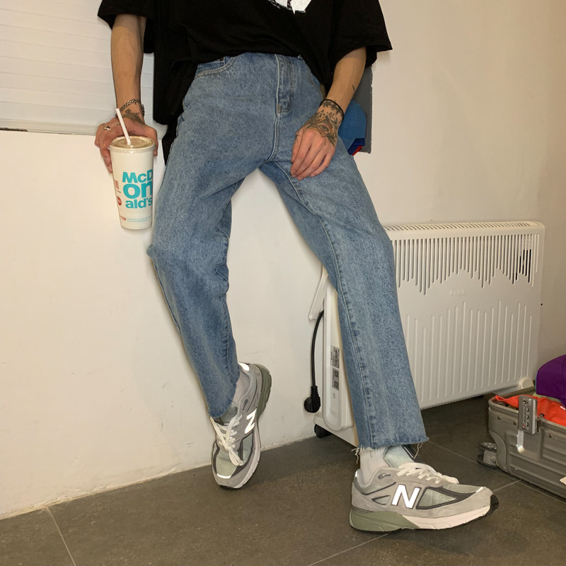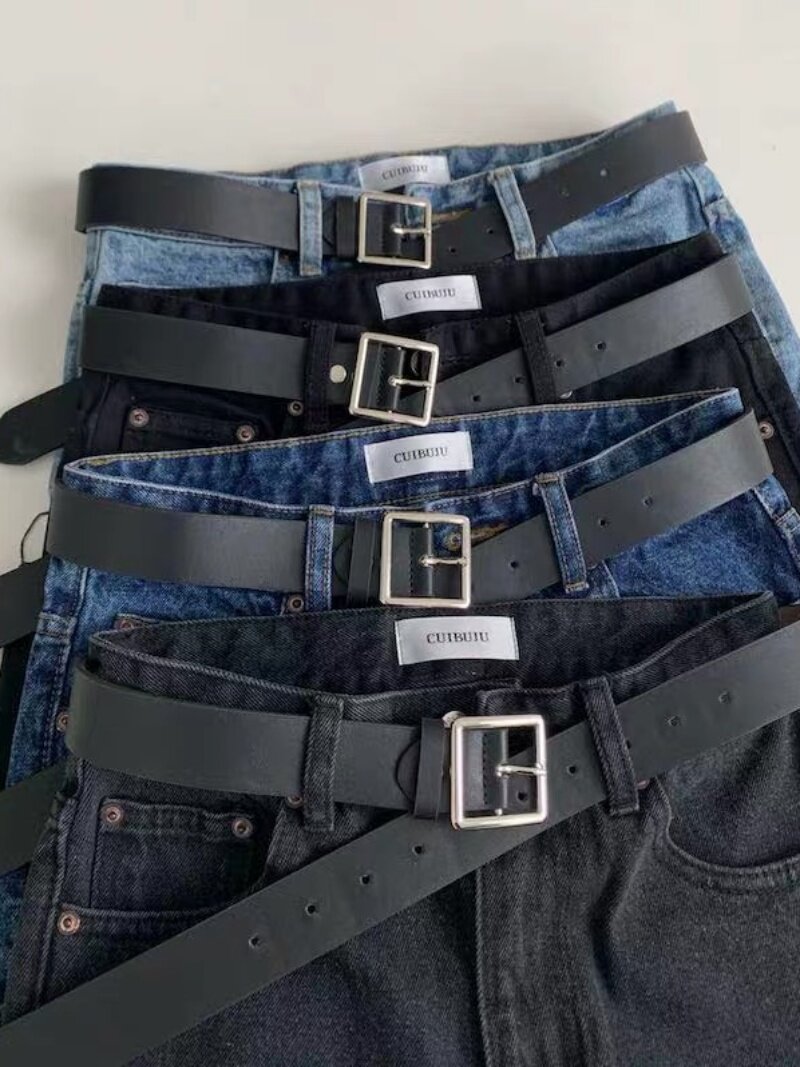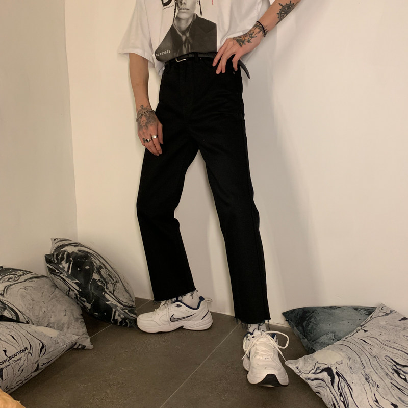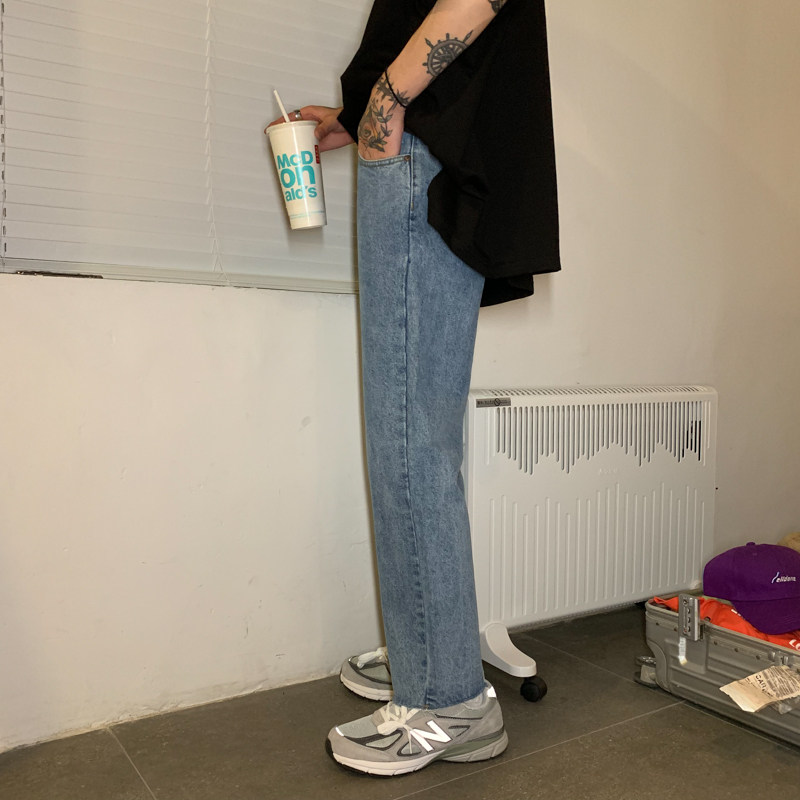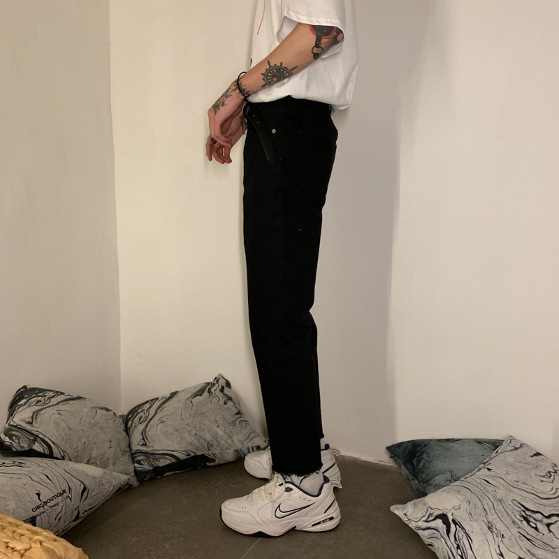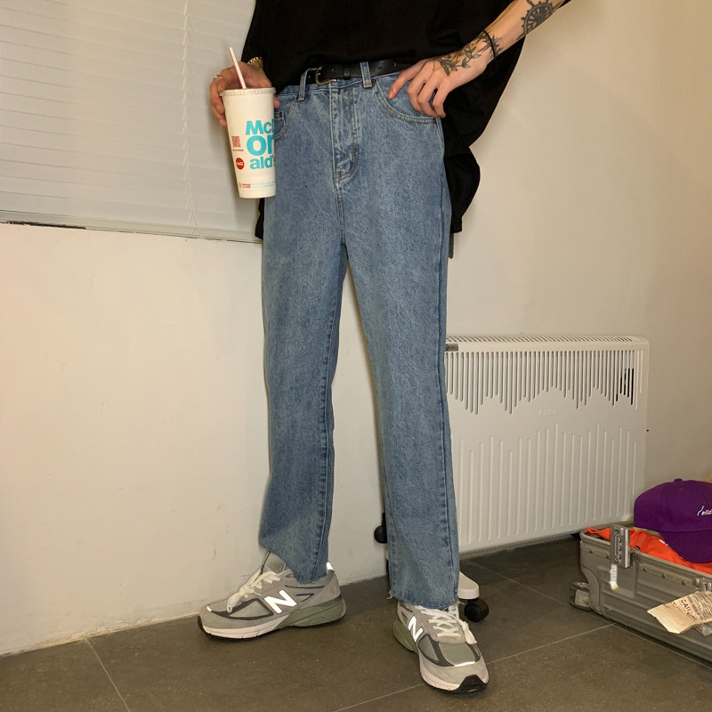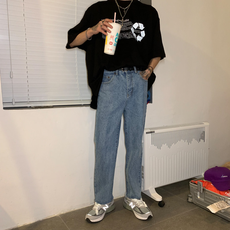 Ремень, корейские джинсы, штаны, свободный прямой крой