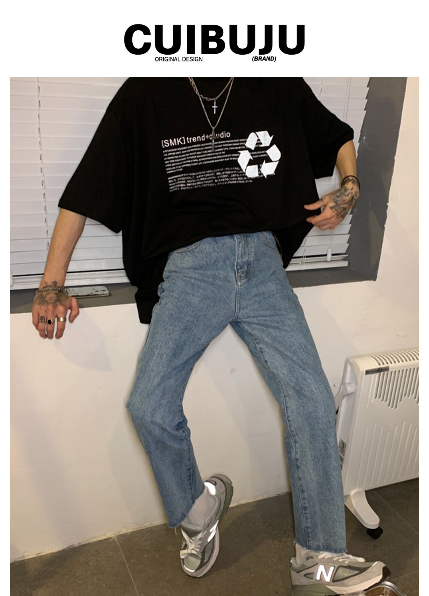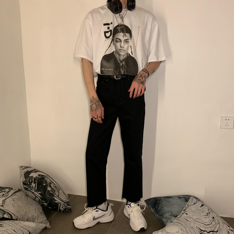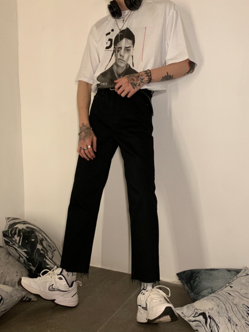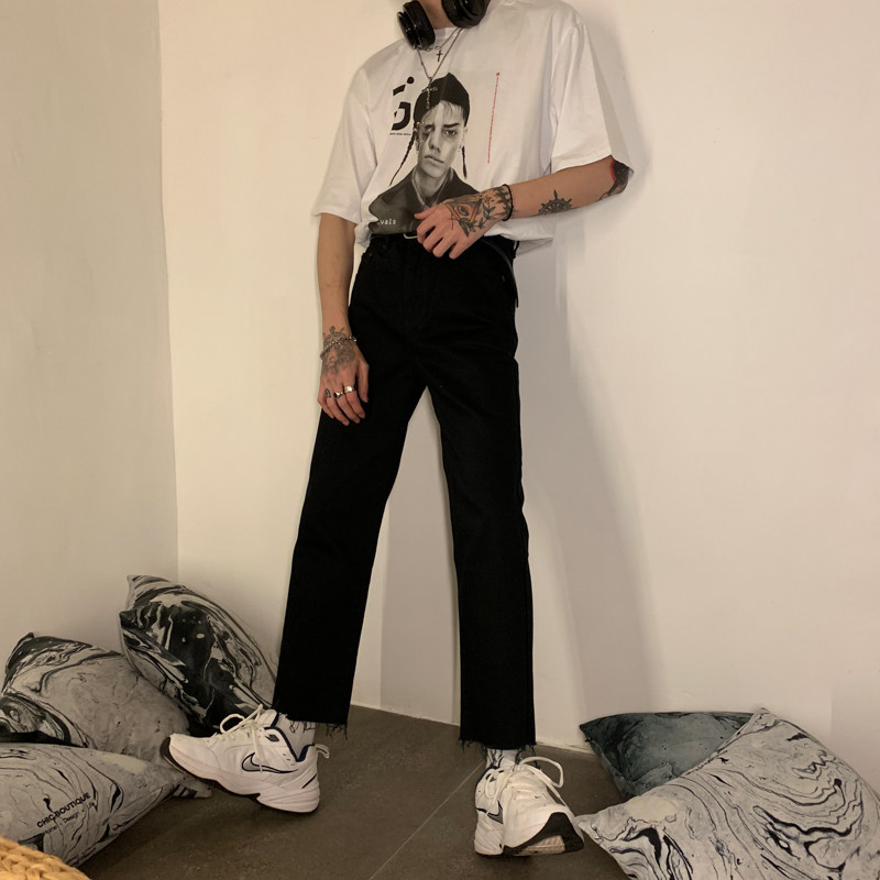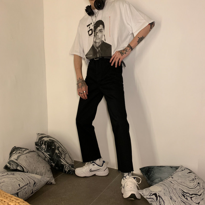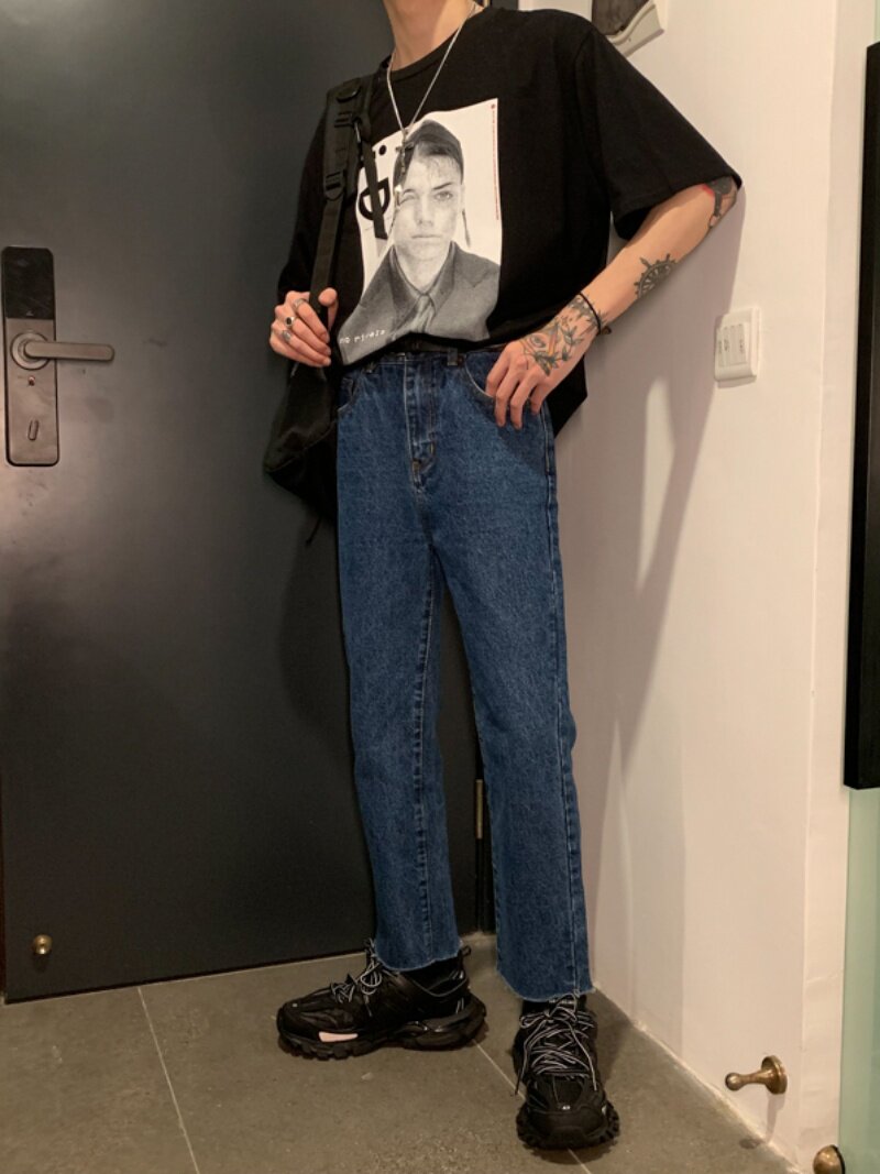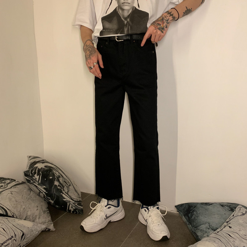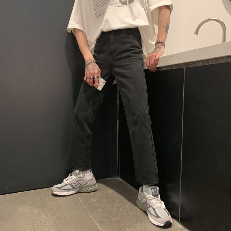 Ремень, корейские джинсы, штаны, свободный прямой крой
