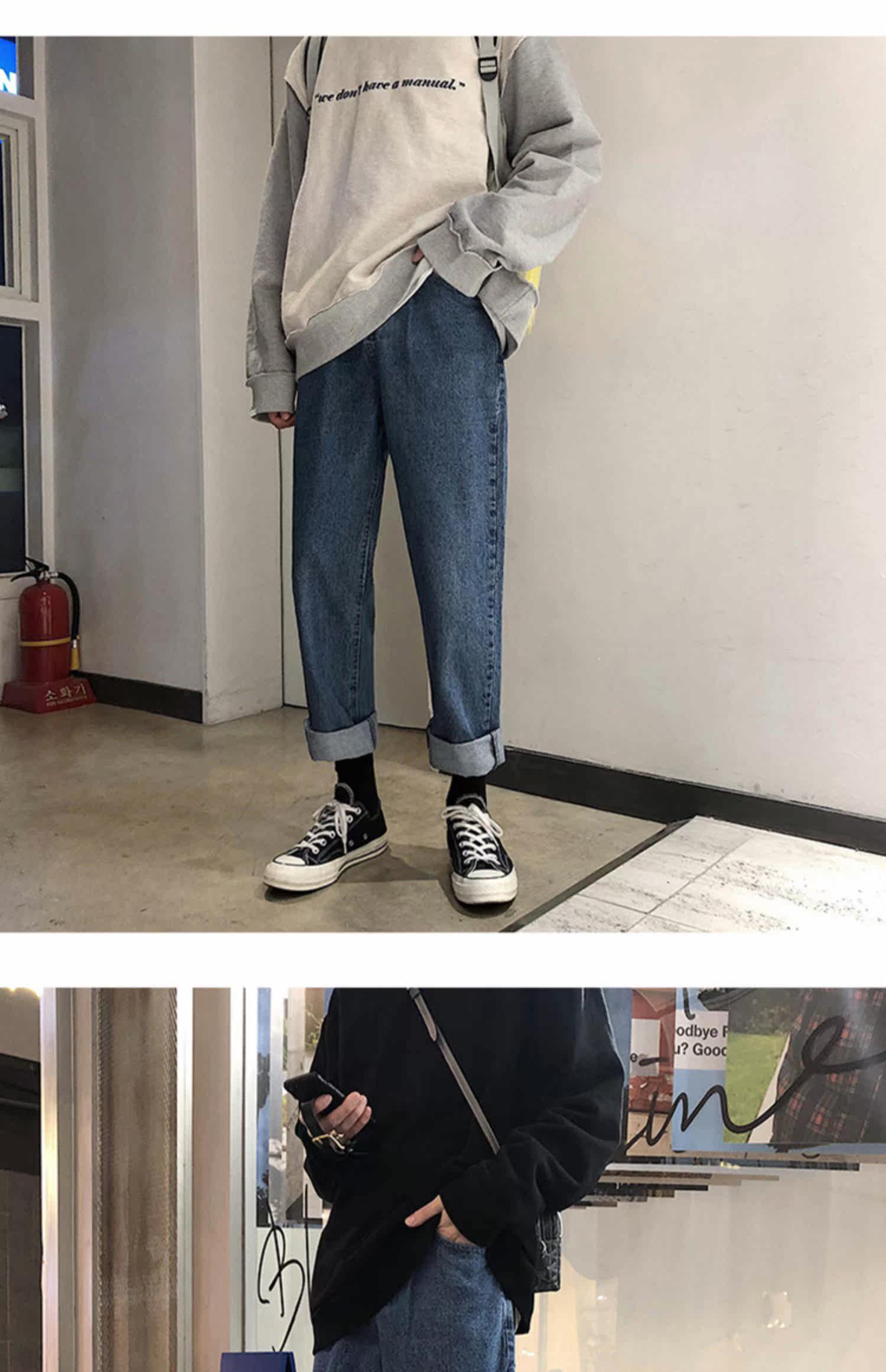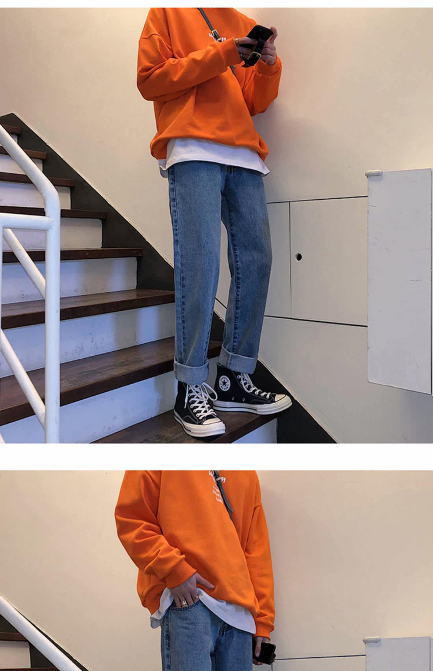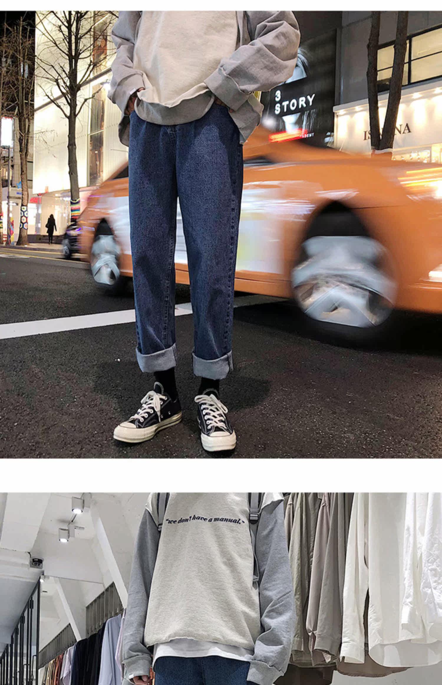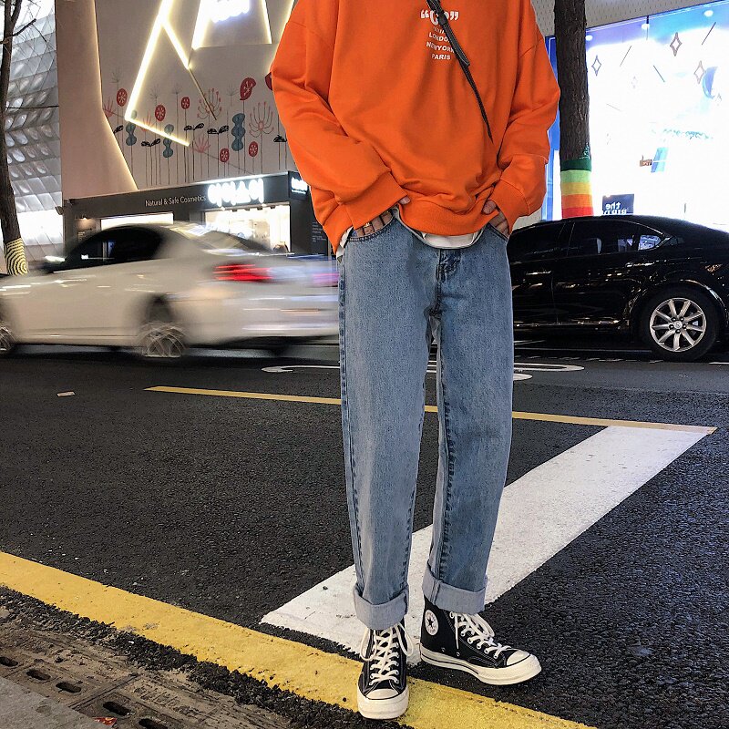 Трендовые джинсы, брендовые штаны, в корейском стиле, оверсайз, свободный прямой крой
