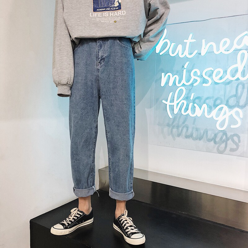 Штаны, весенние трендовые джинсы, свободный прямой крой, популярно в интернете