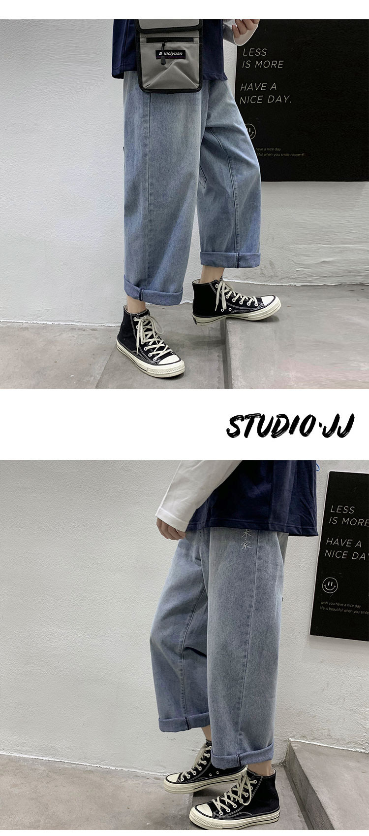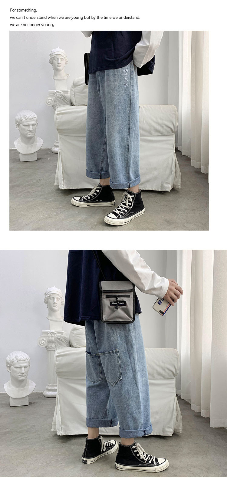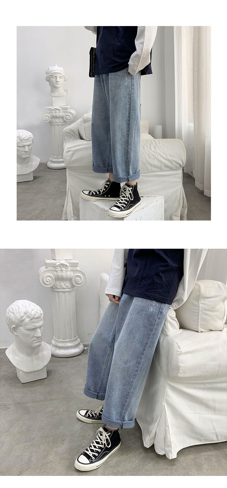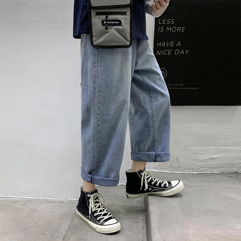 Джинсы, штаны, свободный прямой крой, в корейском стиле, популярно в интернете
