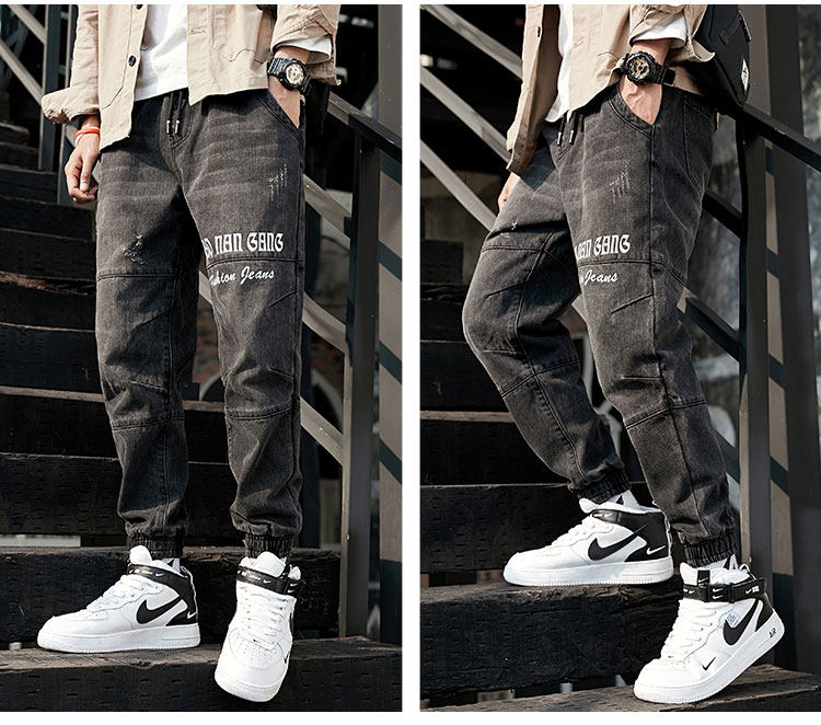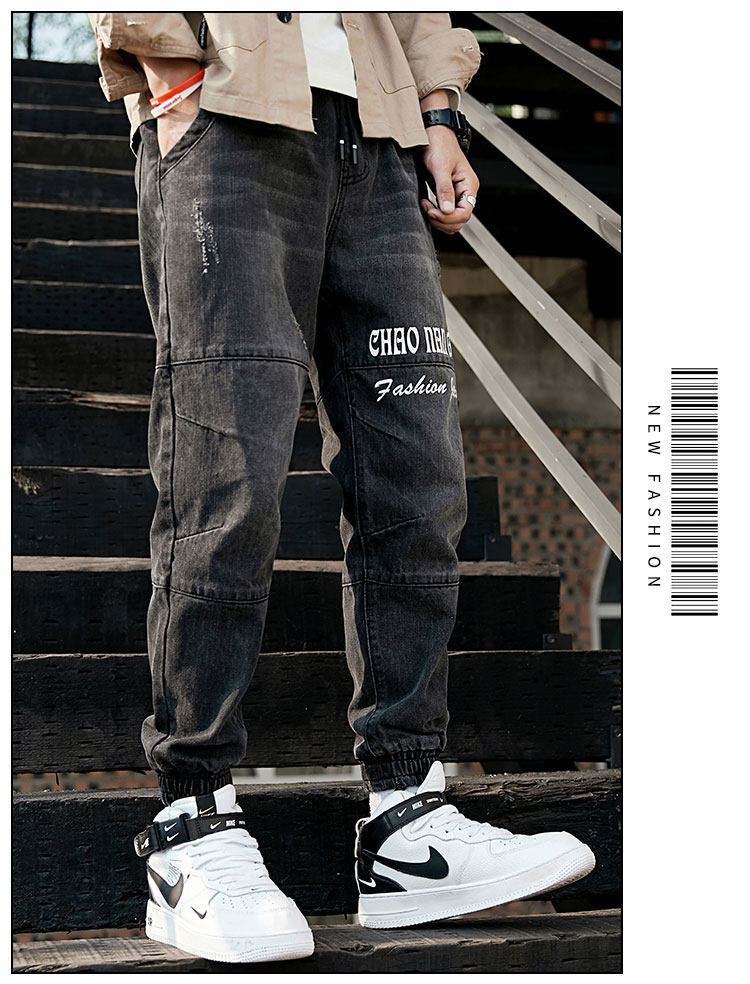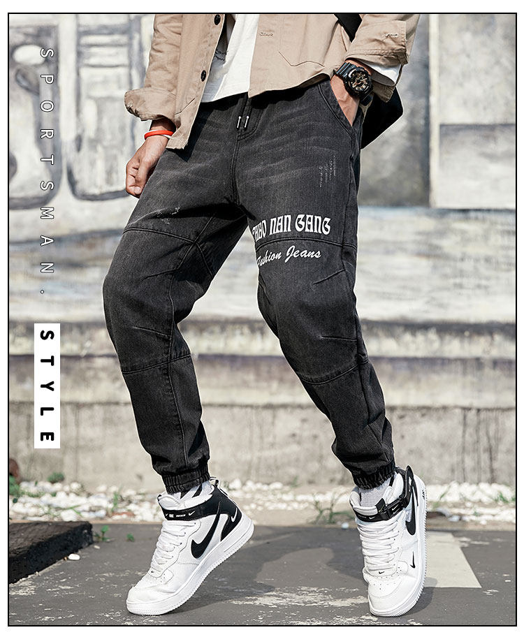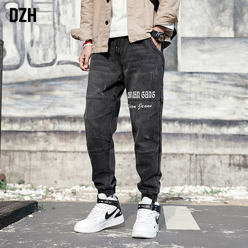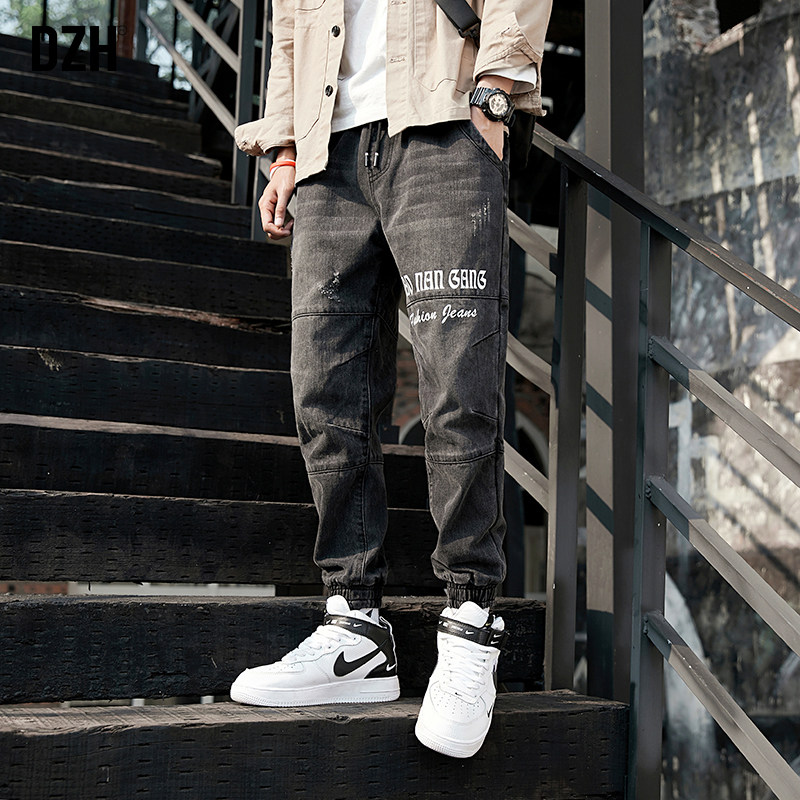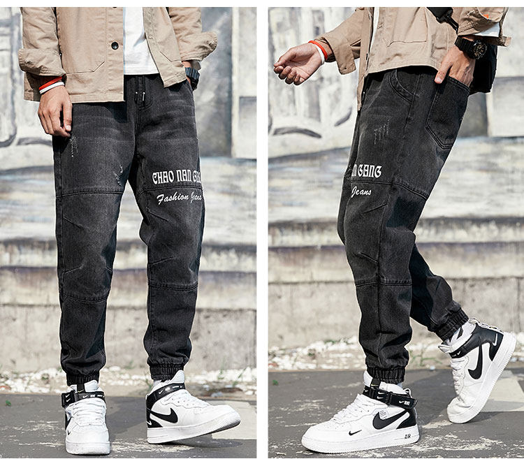 Штаны, весенние джинсы, эластичная талия, оверсайз
