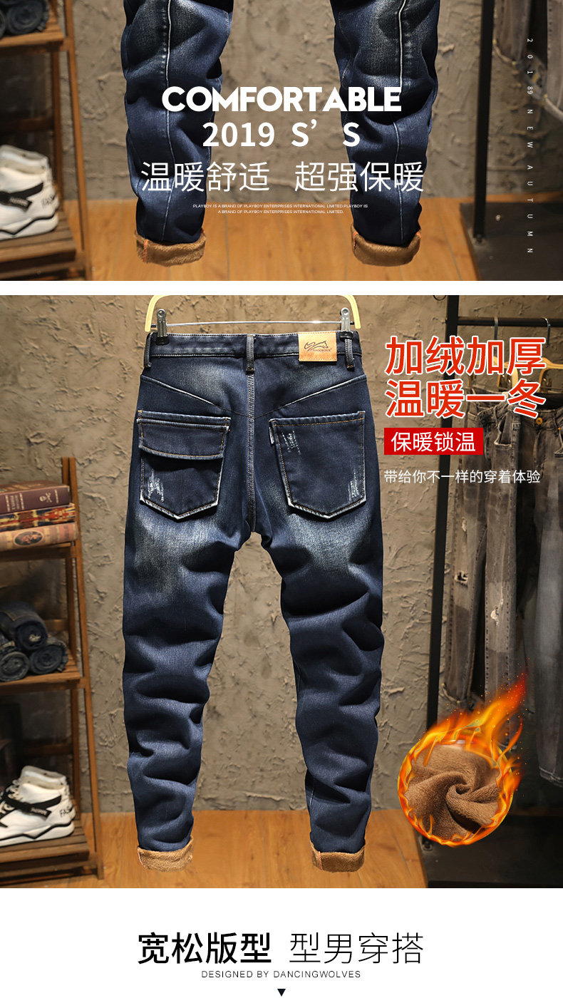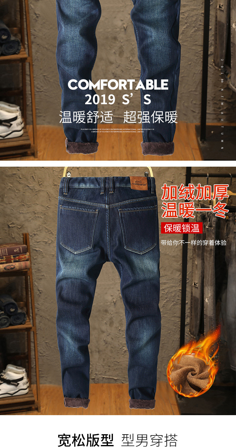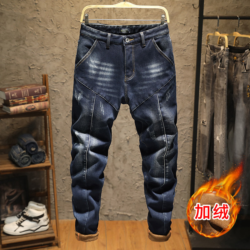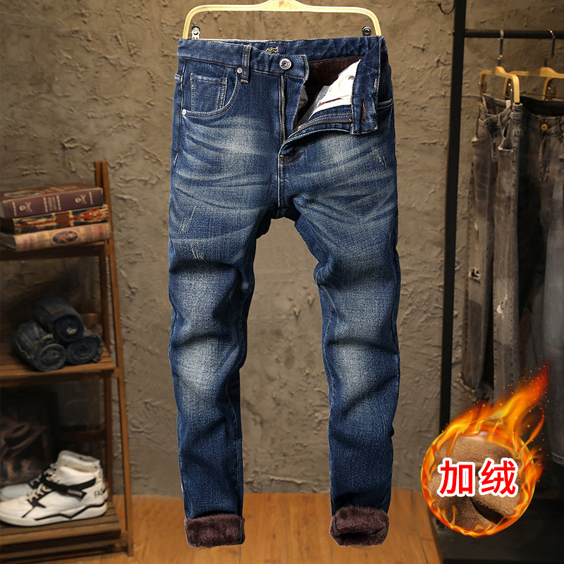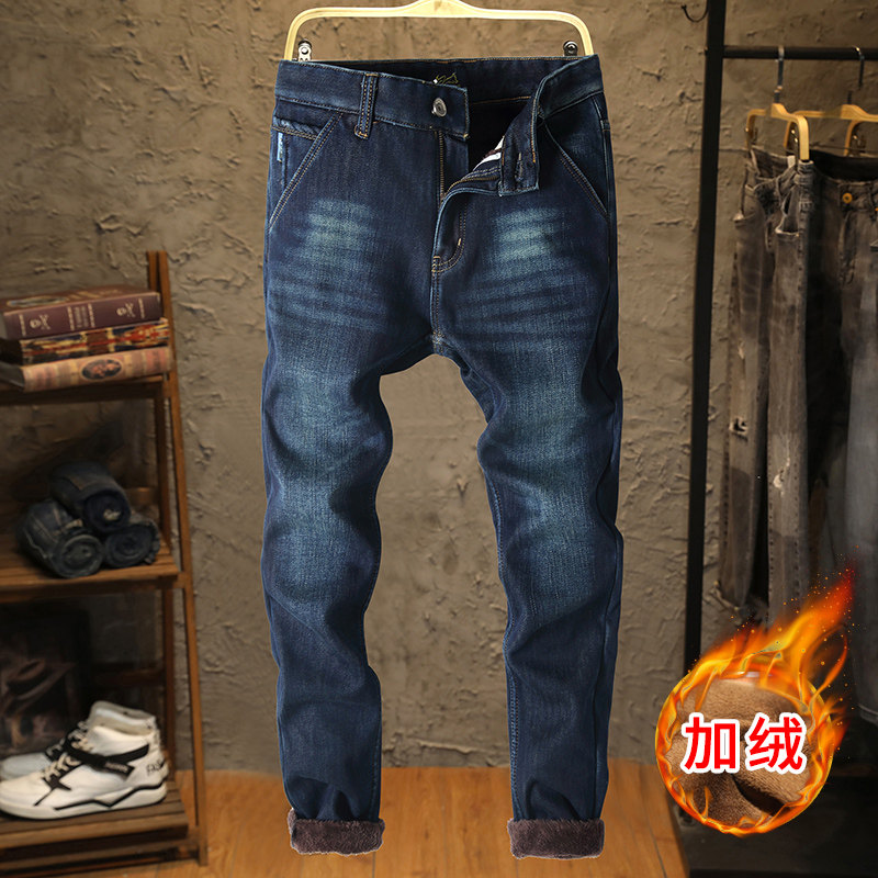 Эластичные флисовые джинсы с начесом, демисезонные удерживающие тепло штаны, оверсайз