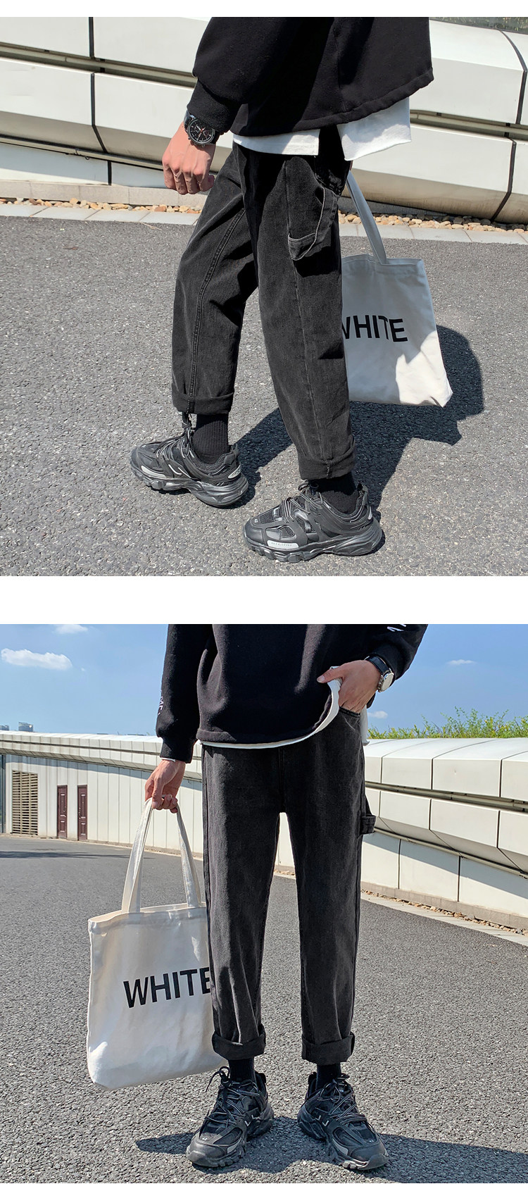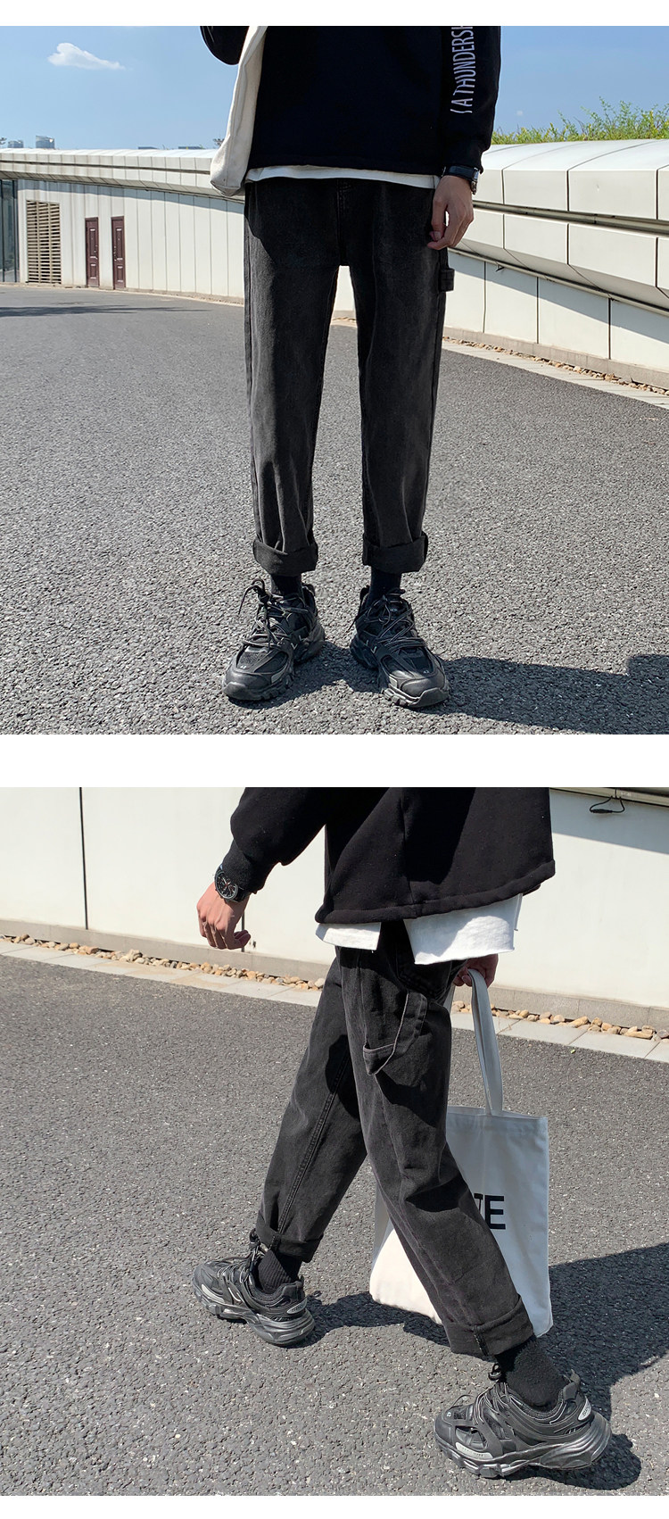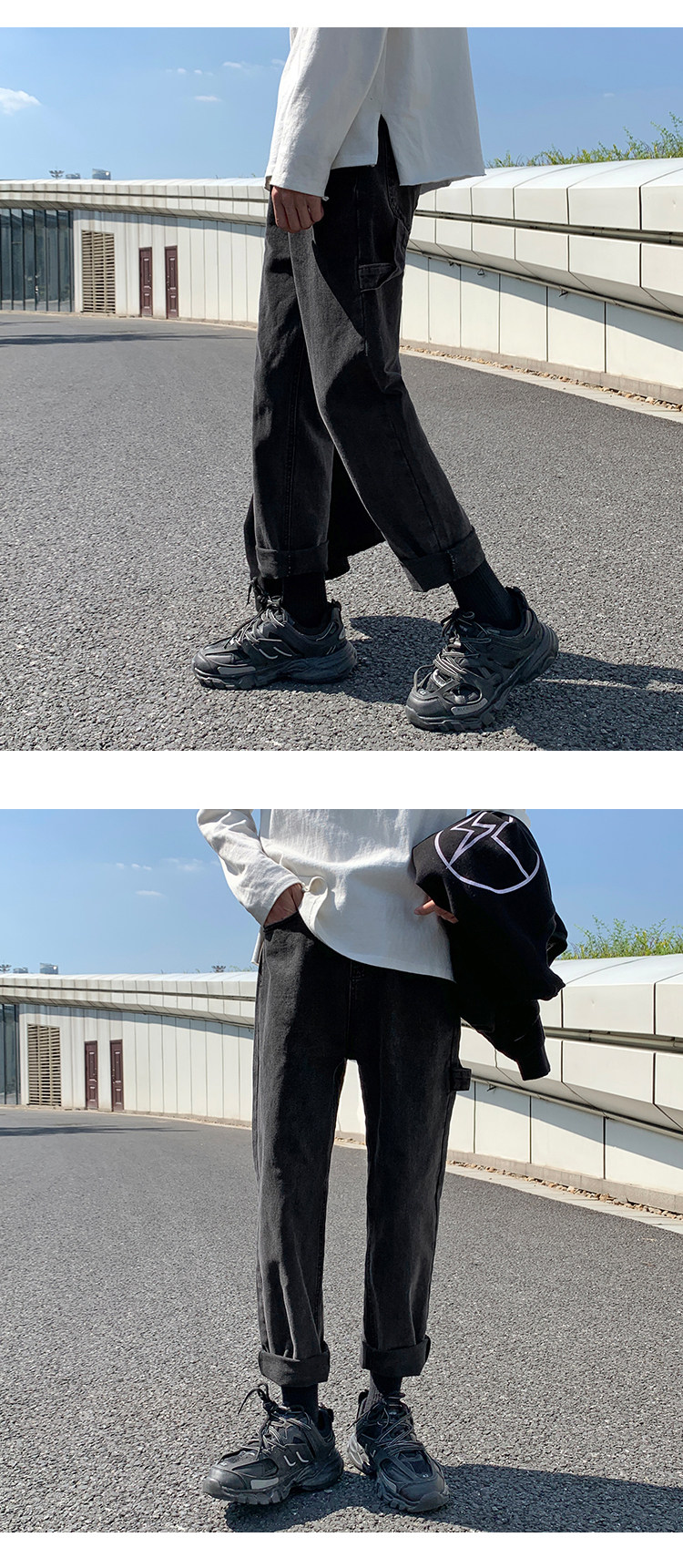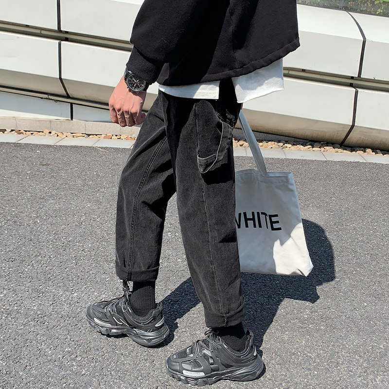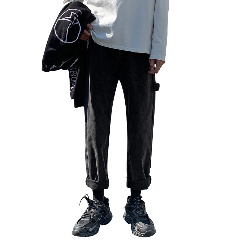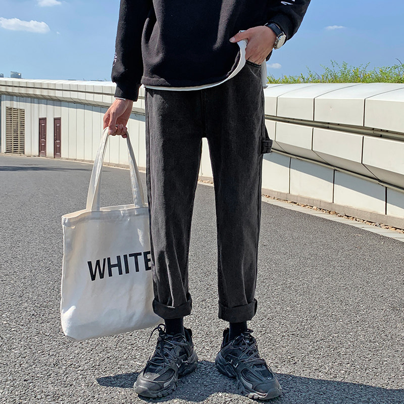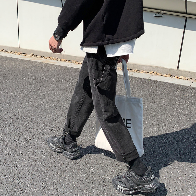 Трендовые джинсы, демисезонные штаны, 2019, популярно в интернете, в корейском стиле, свободный прямой крой