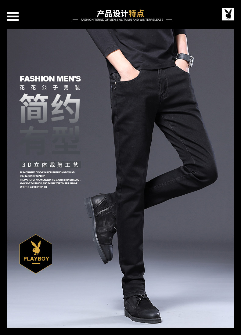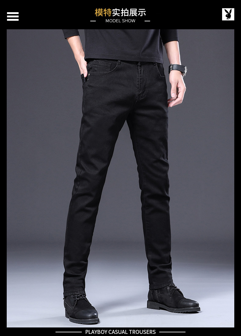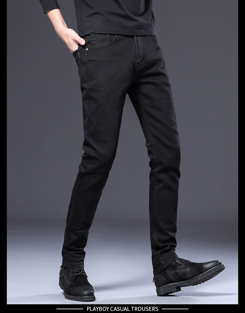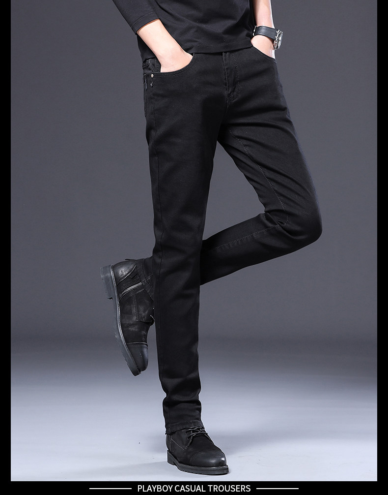 Playboy, осенние черные джинсы, эластичные штаны, 2025 года, в корейском стиле, облегающий крой