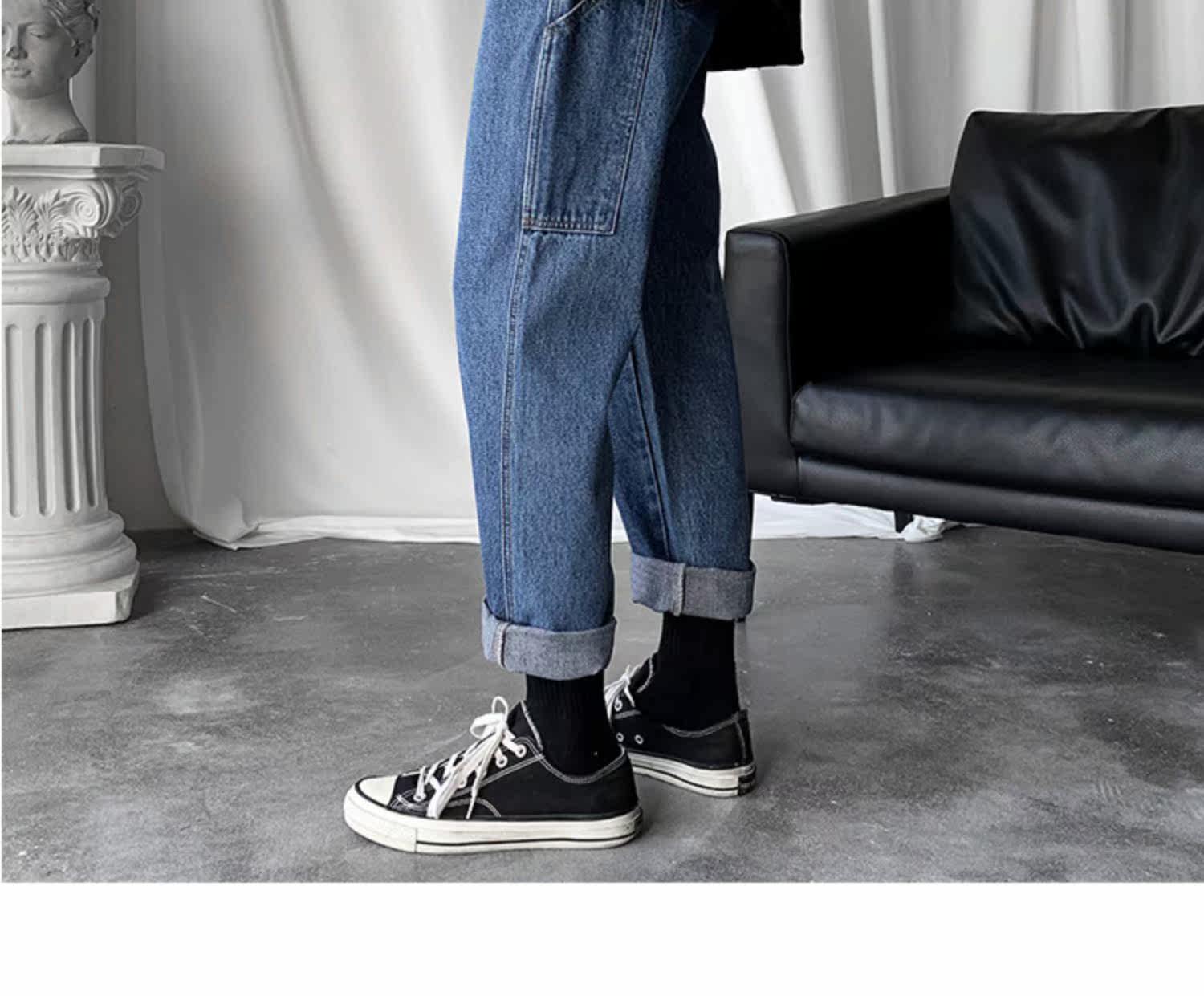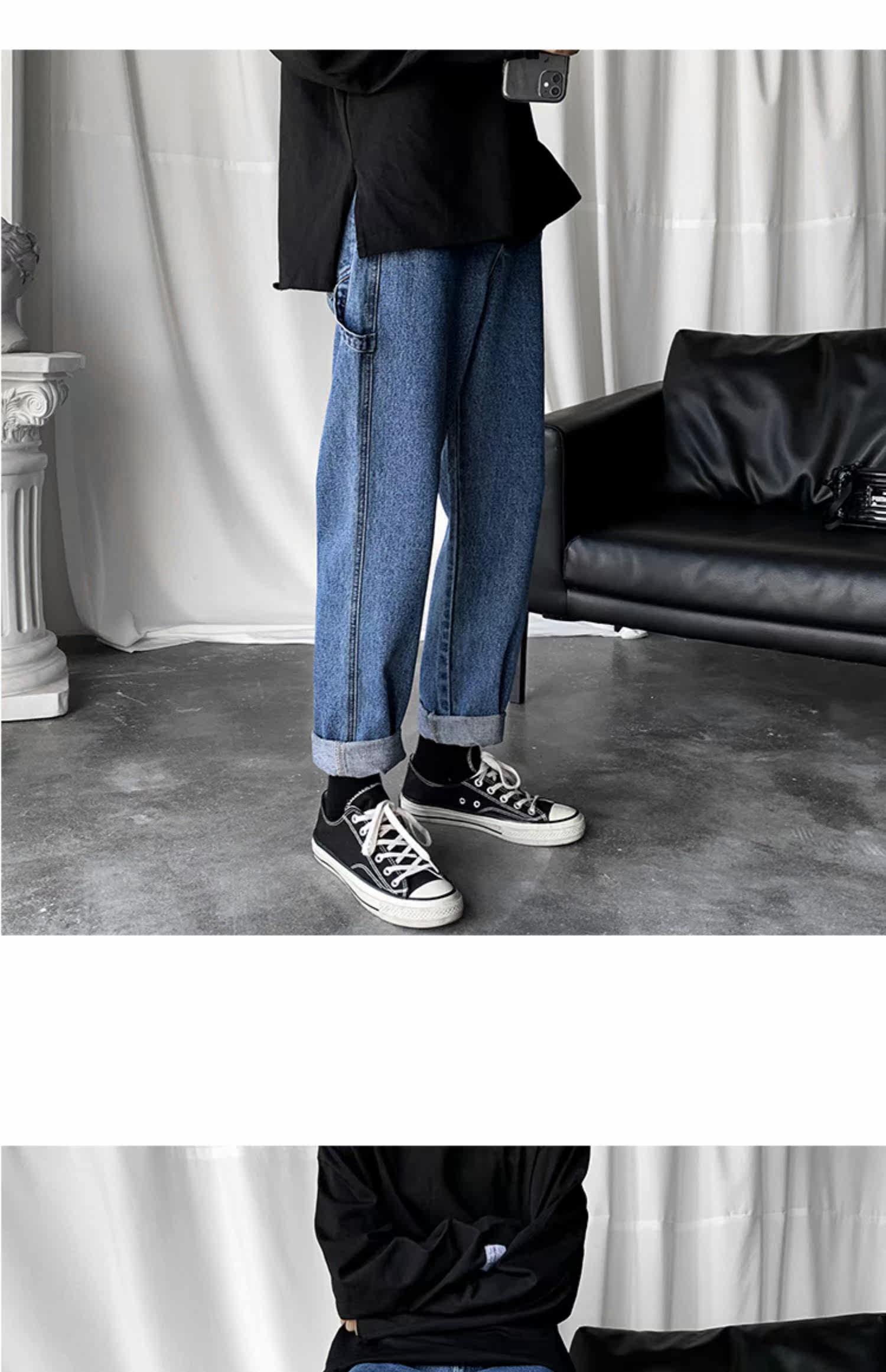 Демисезонные джинсы, трендовые брендовые штаны, в корейском стиле, оверсайз, свободный крой