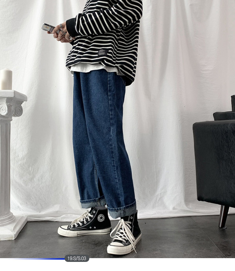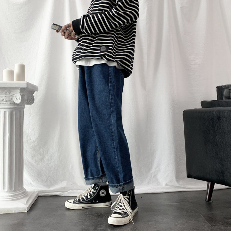 Демисезонные брендовые джинсы, трендовые ретро штаны, свободный прямой крой, в корейском стиле
