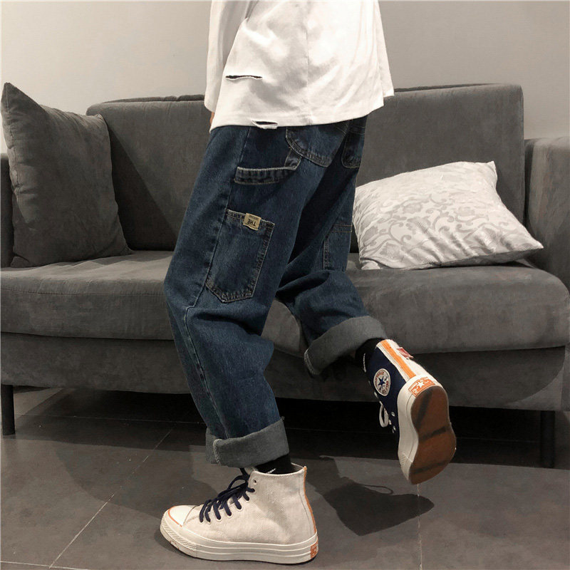 Флисовые штаны, трендовые брендовые зимние джинсы, увеличенная толщина, оверсайз, в корейском стиле, свободный прямой крой, французский стиль