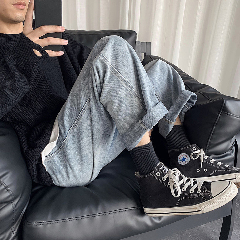 Светлые прямые свободные джинсы, трендовые штаны, в корейском стиле, популярно в интернете