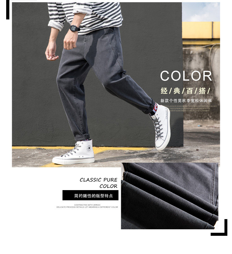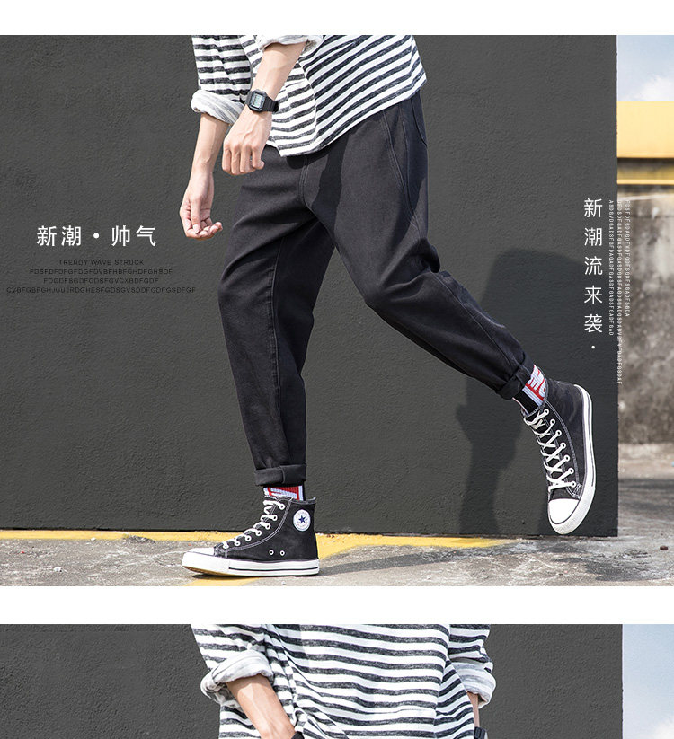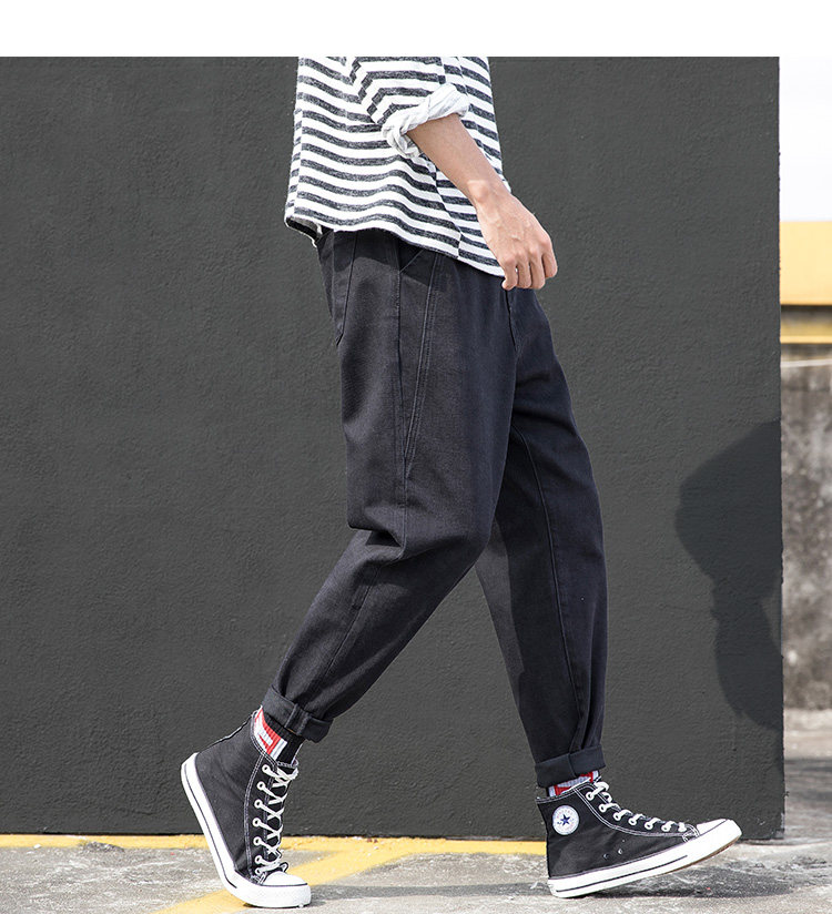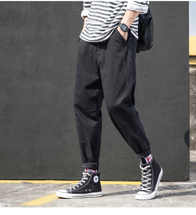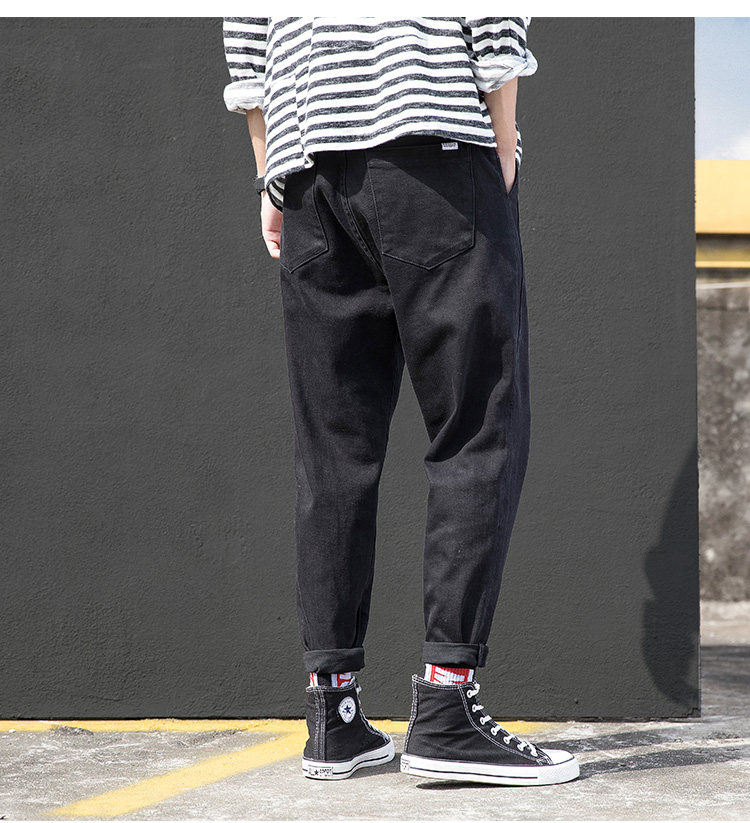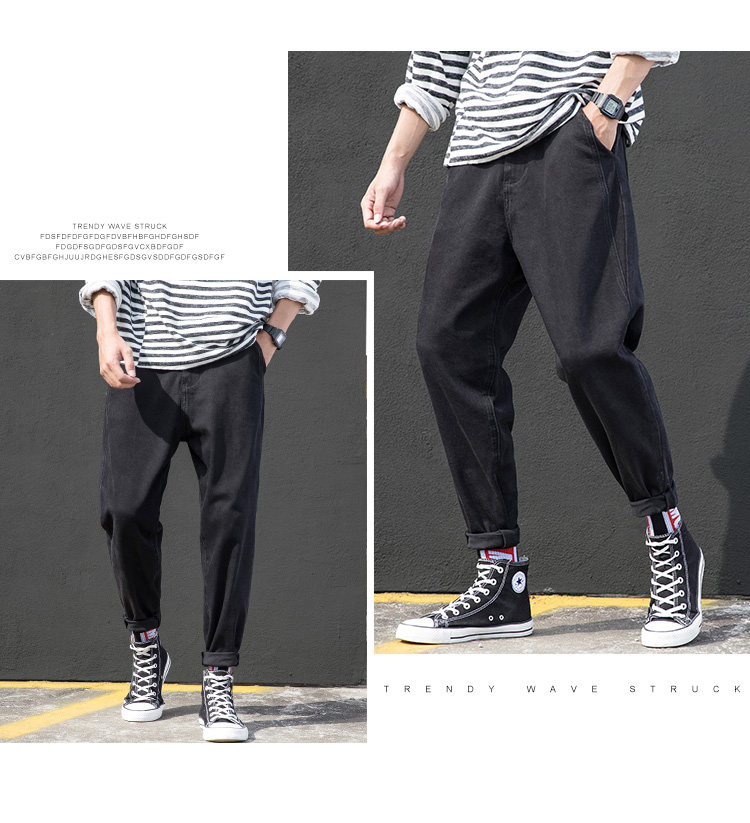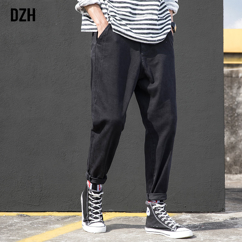 Осенние джинсы, трендовые черные штаны, свободный прямой крой, в корейском стиле