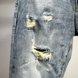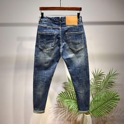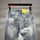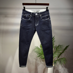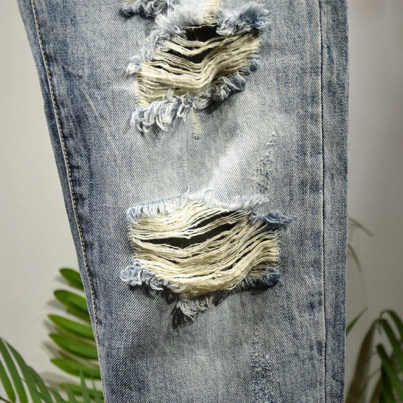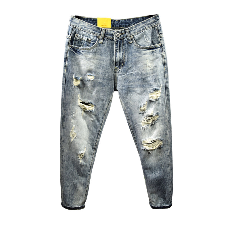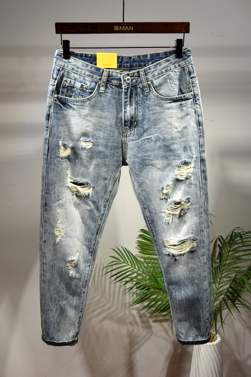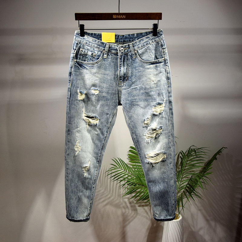 Пять -летняя магазин -магазины брюки мужская джинсовая порнография, свободная царапина 9 баллов тенденция к дикой пещере девять уязвимости гнилые брюки