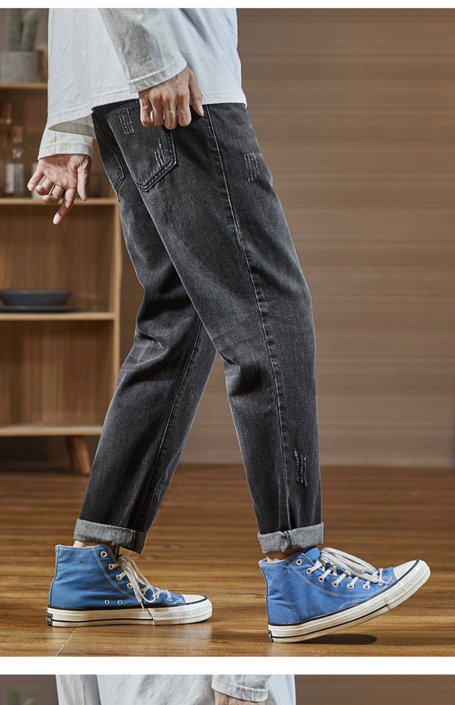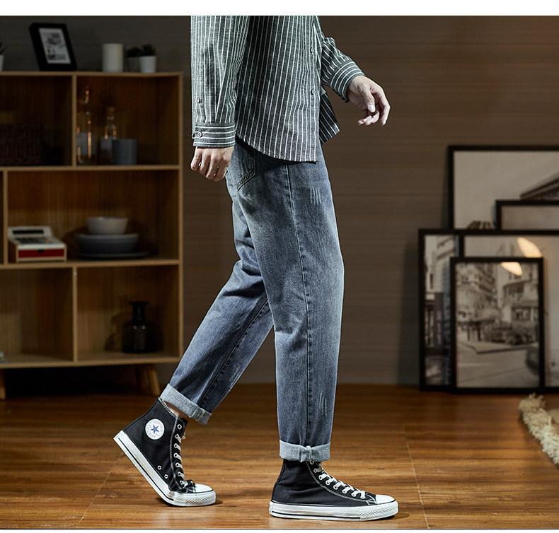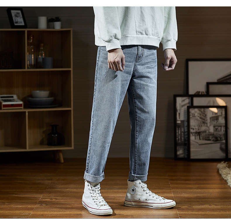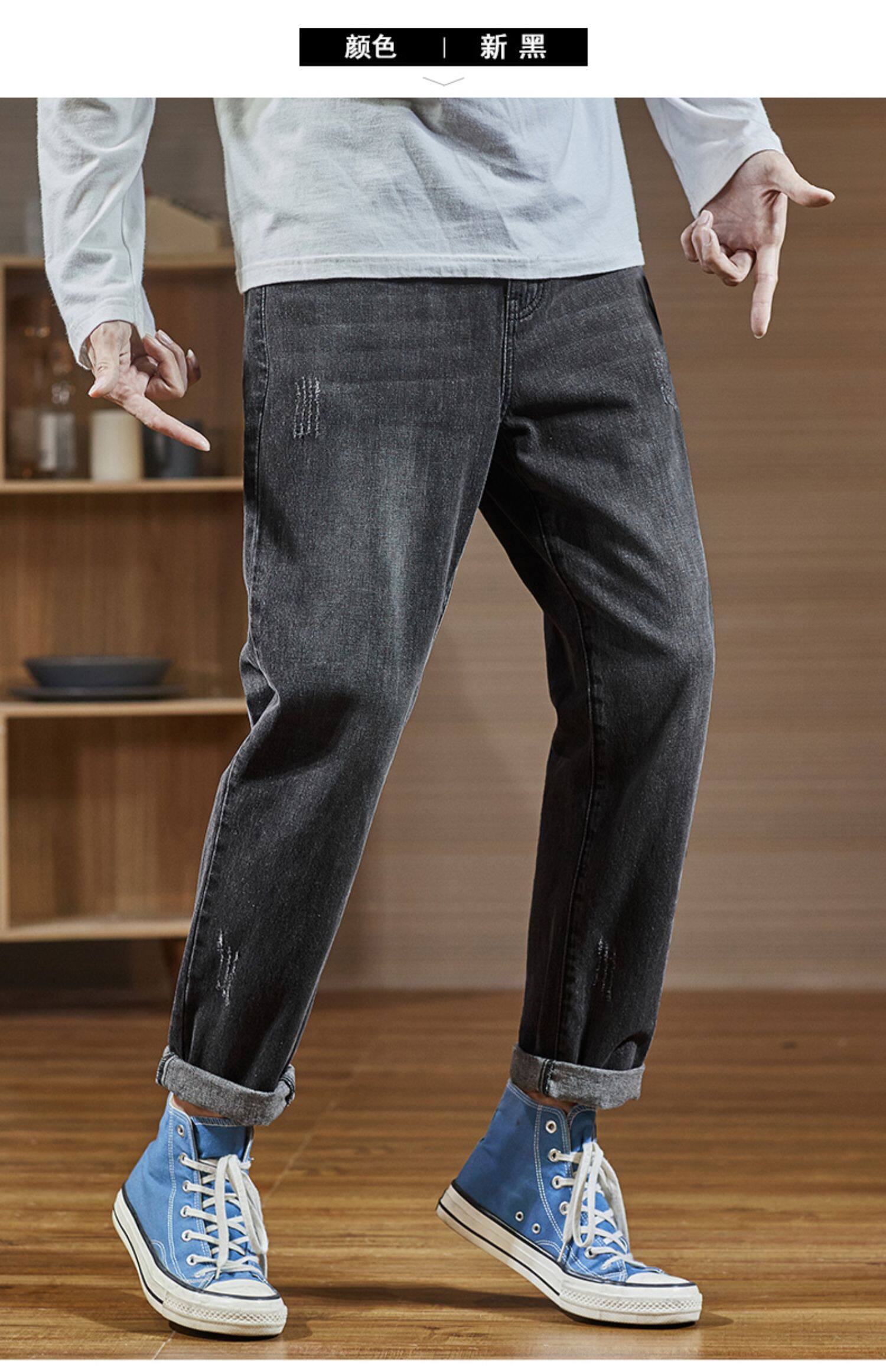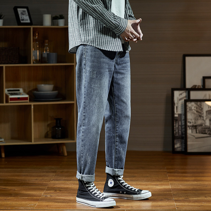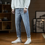Мужские летние тонкие прямые свободные джинсы, трендовые штаны, в корейском стиле