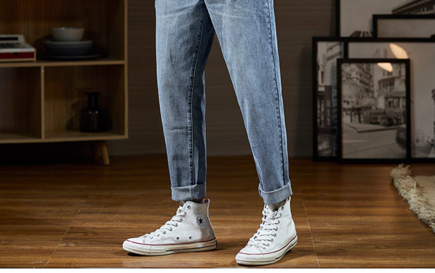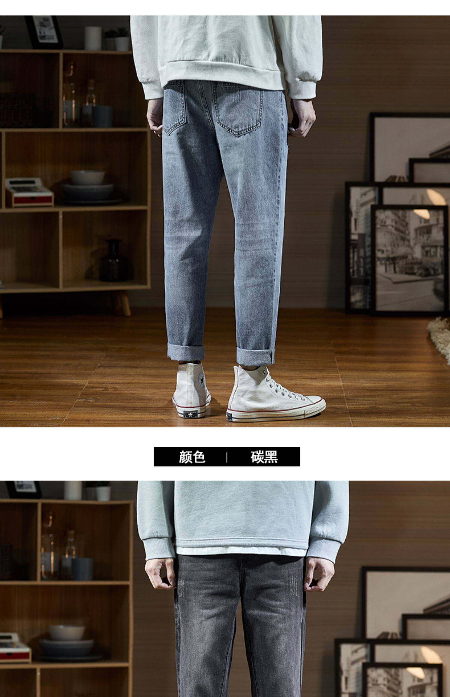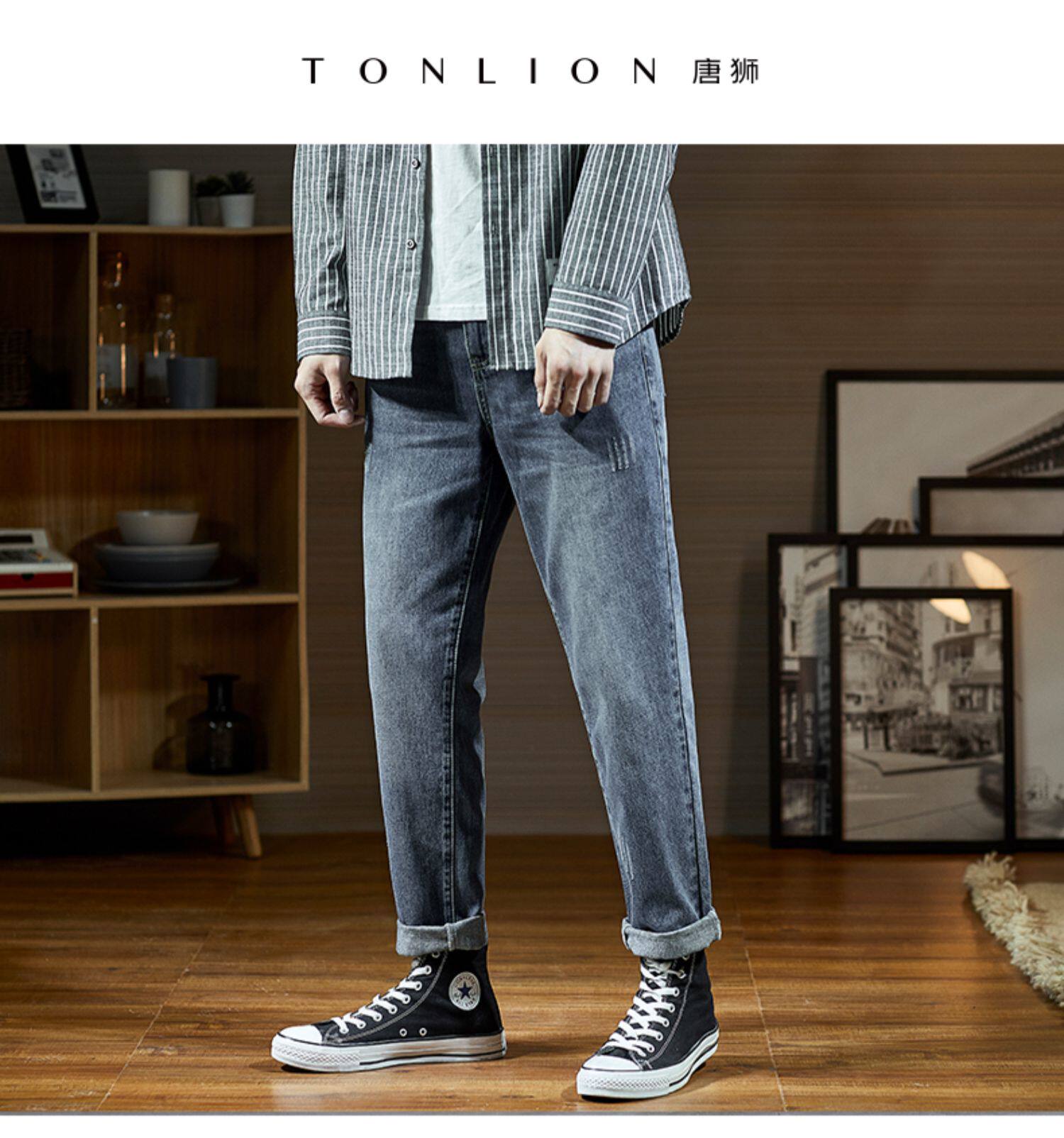 Мужские летние тонкие прямые свободные джинсы, трендовые штаны, в корейском стиле