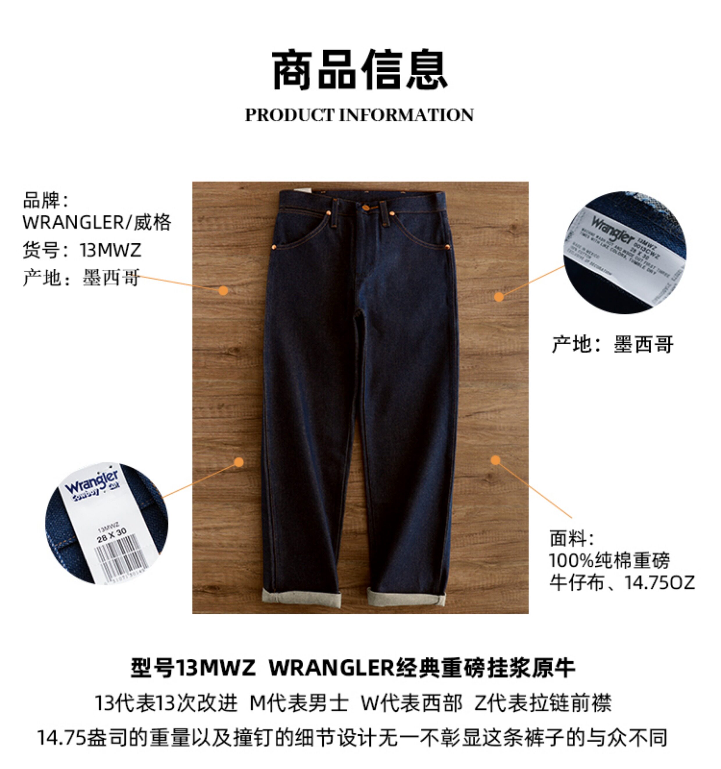 Aitong Niuhe версия Wrangler Weeg 13mwz Основной цвет без джинсов, тяжелых прямых брюк