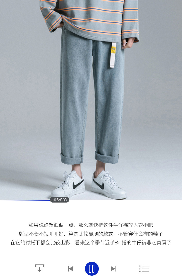 Tide, тонкие джинсы, трендовые штаны, свободный прямой крой, в корейском стиле, популярно в интернете