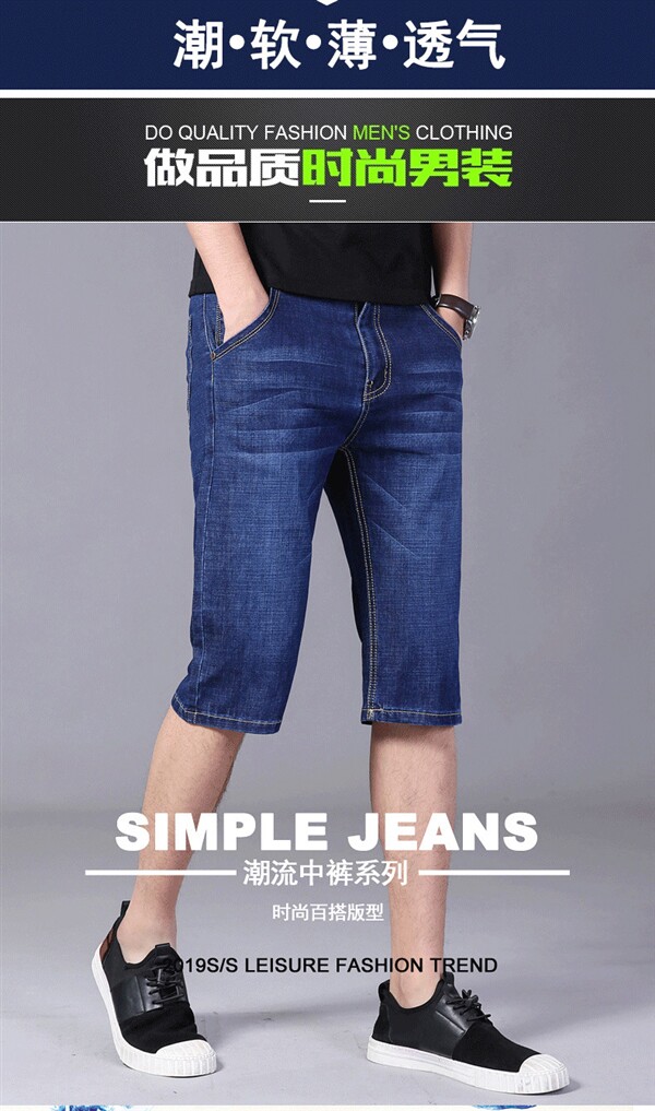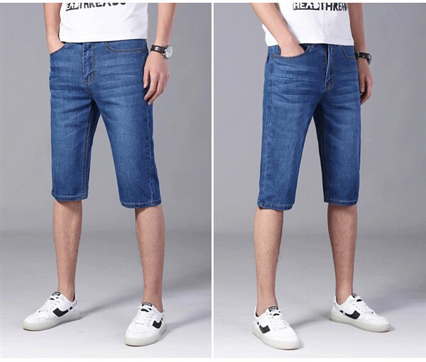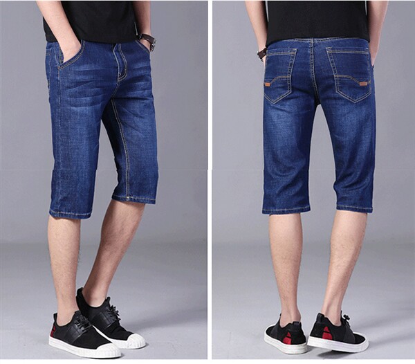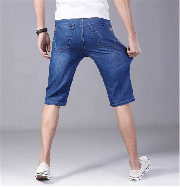 Мужчины растягивают джинсовые ретро -шорты летние половины брюки повседневные джинсы