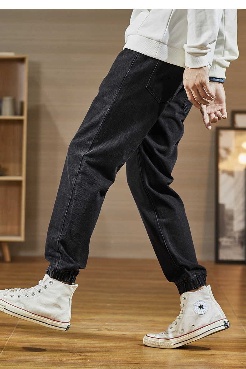 Демисезонные повседневные брюки, джинсы, черные штаны, 2020, свободный крой, эластичная талия