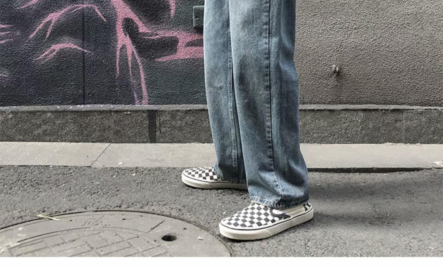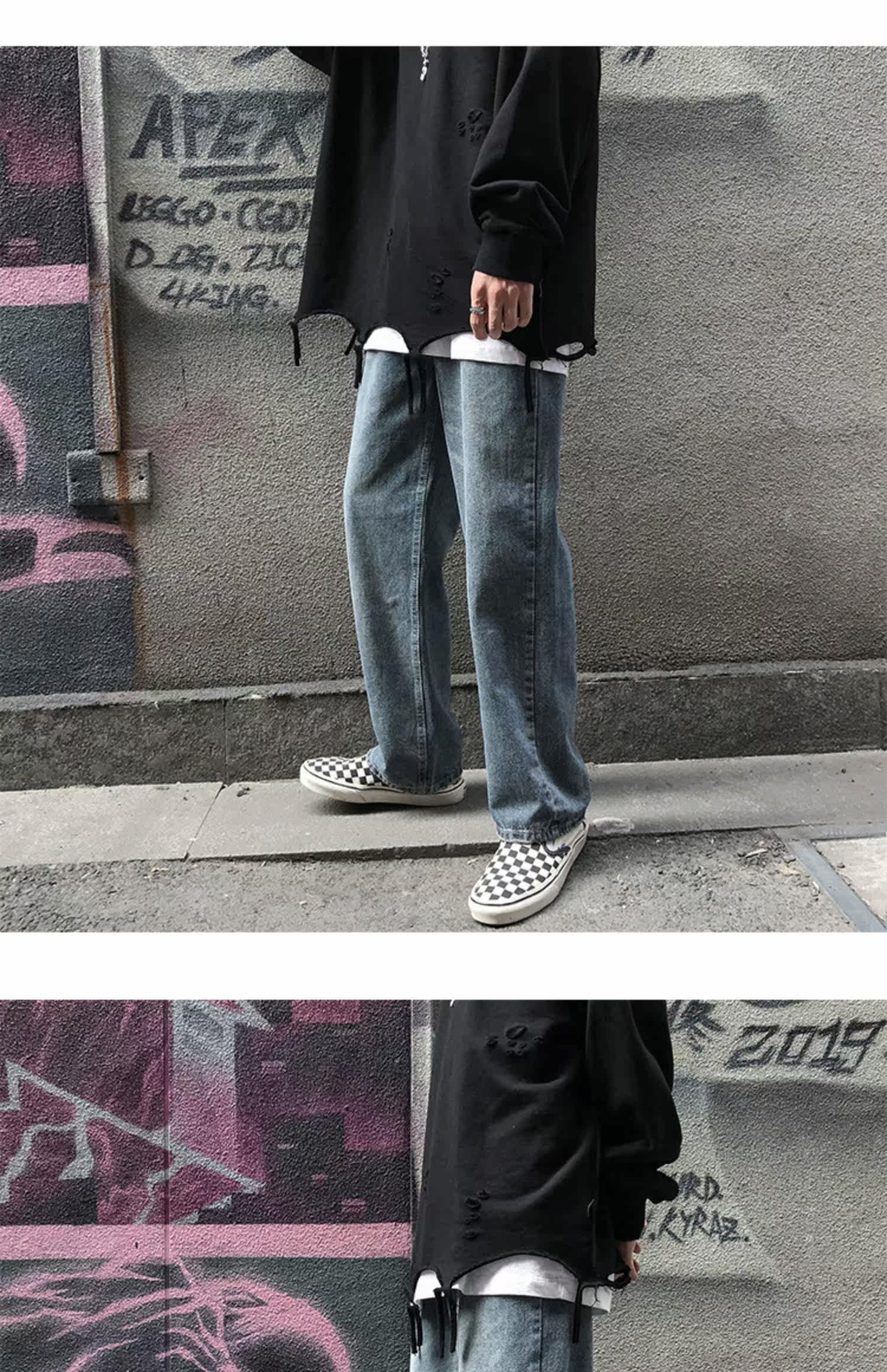 Ретро джинсы, штаны, трендовые брендовые повседневные брюки, свободный прямой крой, в корейском стиле