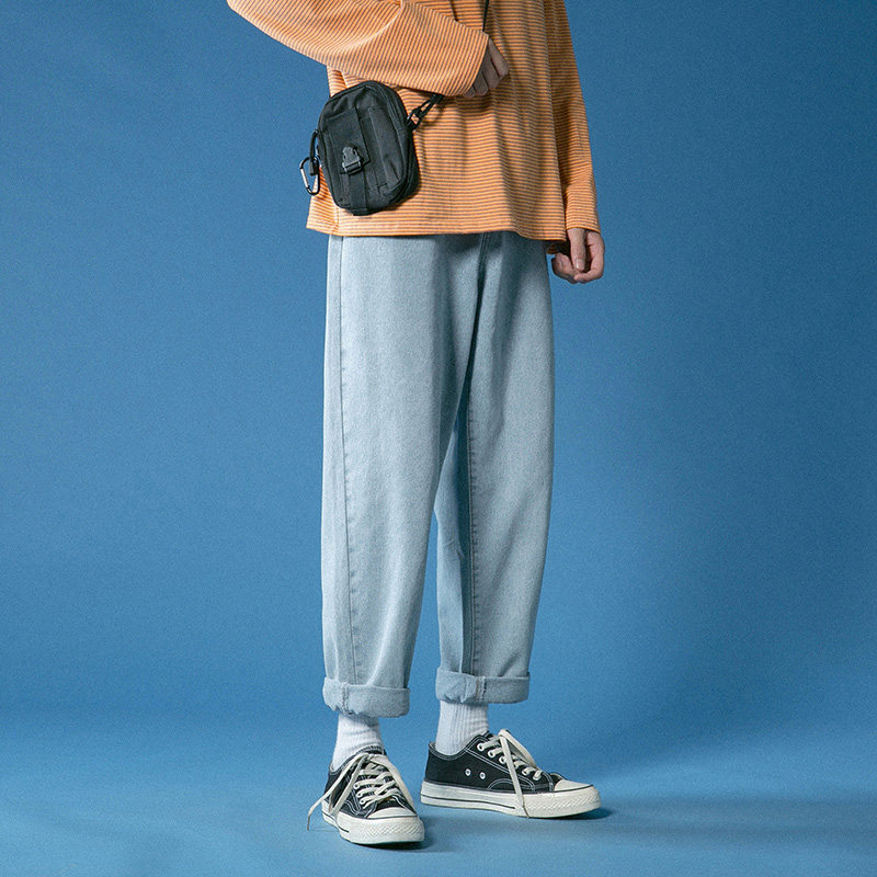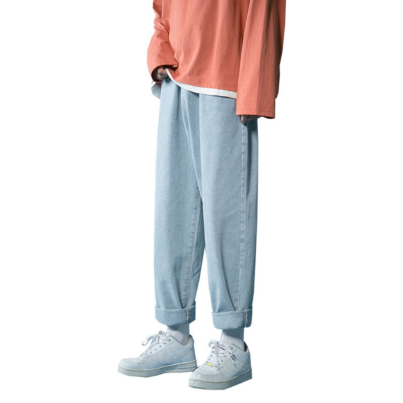 Синие демисезонные джинсы, трендовые брендовые универсальные штаны, осенние, свободный прямой крой