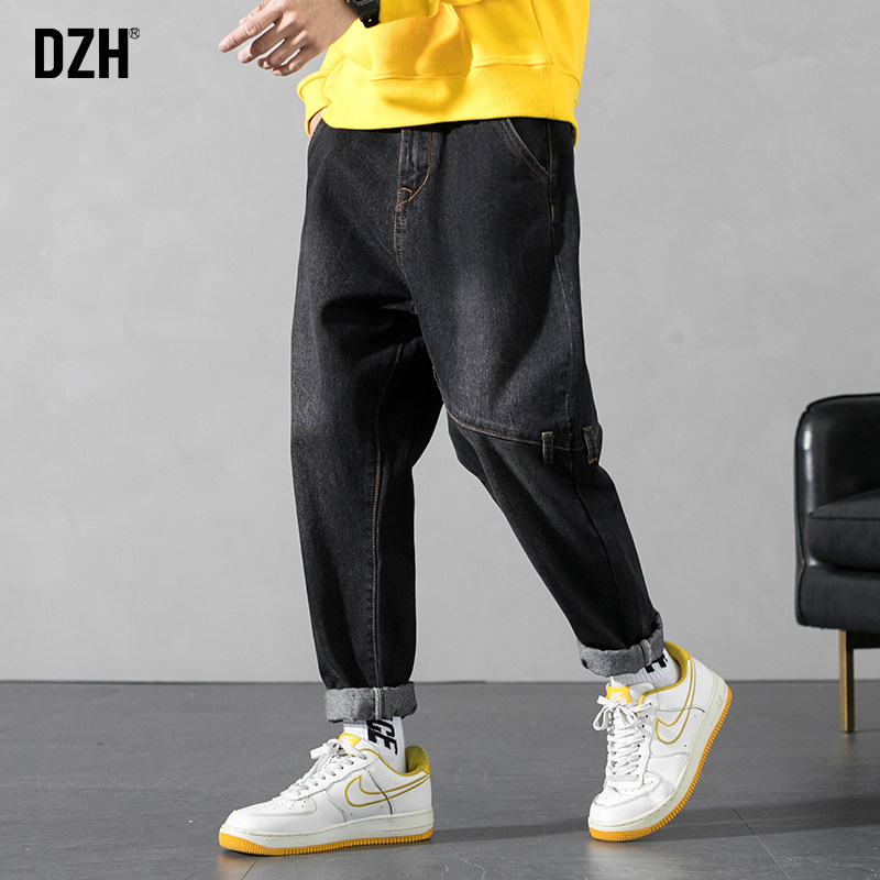 Демисезонные осенние черные джинсы, штаны, повседневные брюки, свободный прямой крой, 2021 года