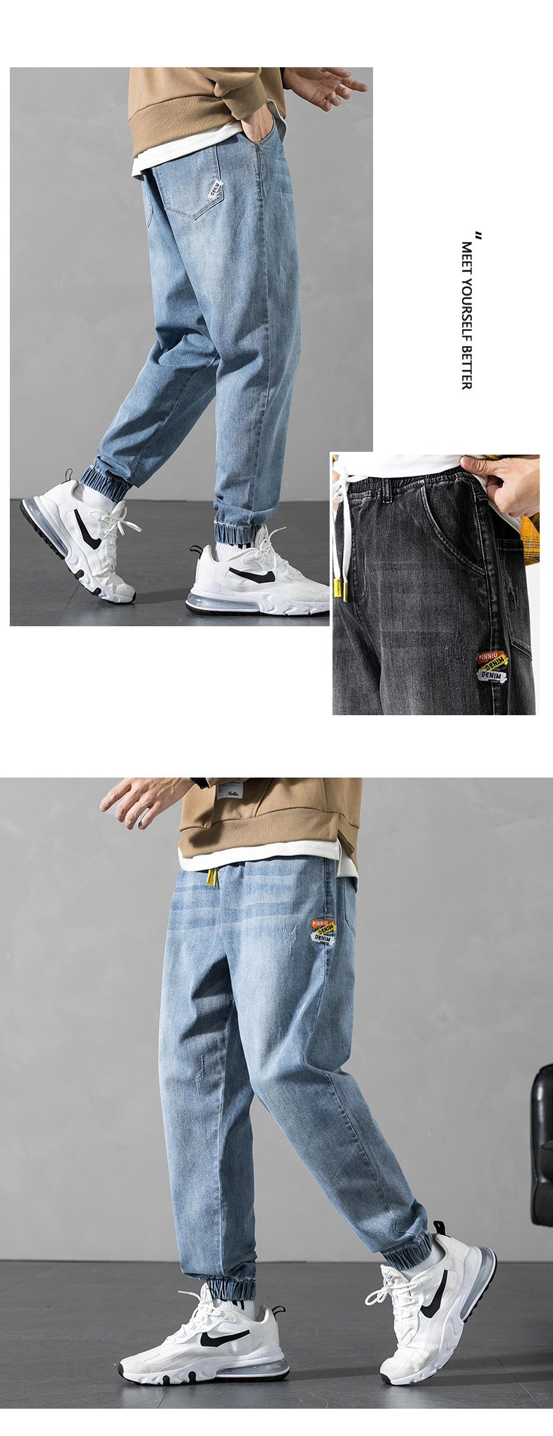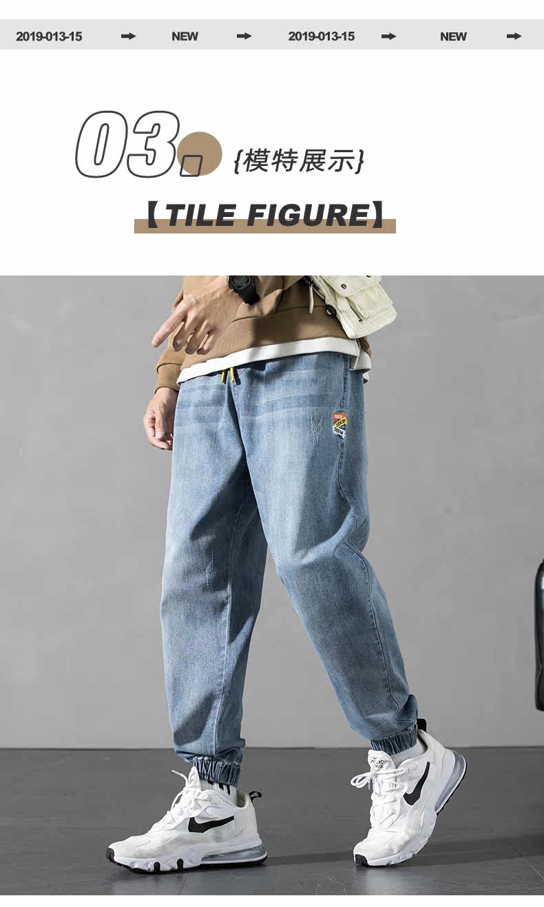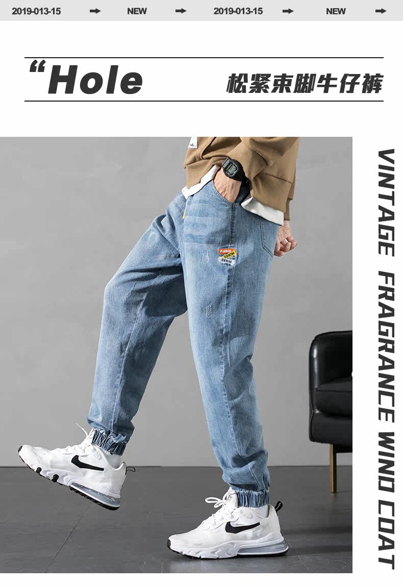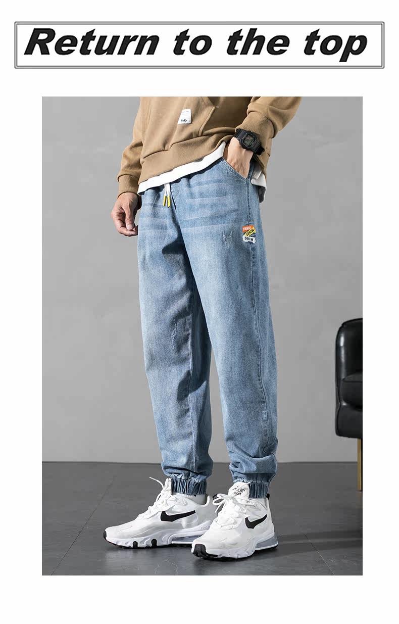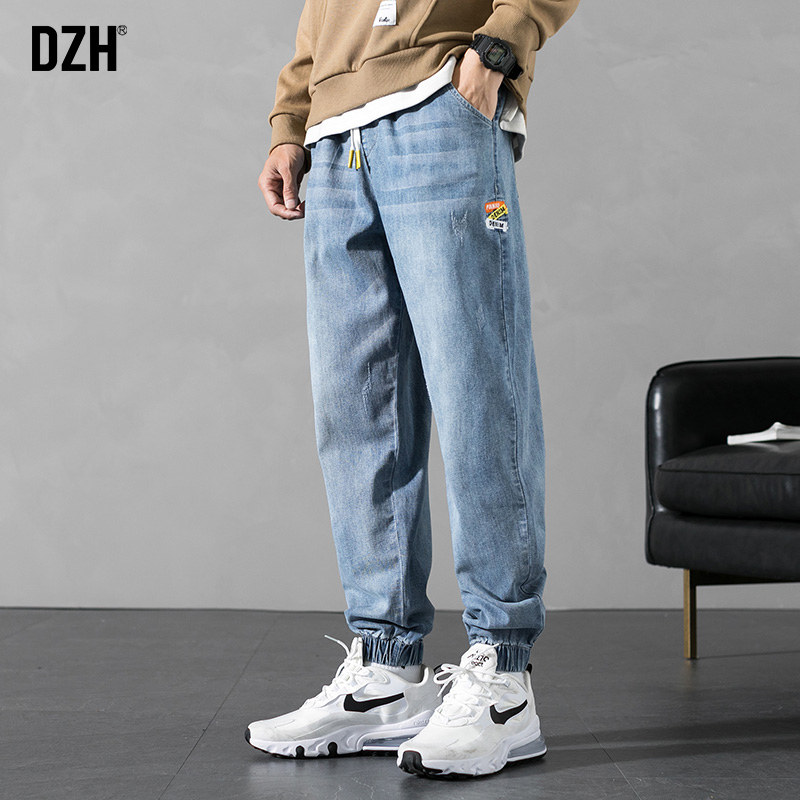 Синие эластичные штаны, осенние джинсы, повседневные брюки для отдыха, оверсайз
