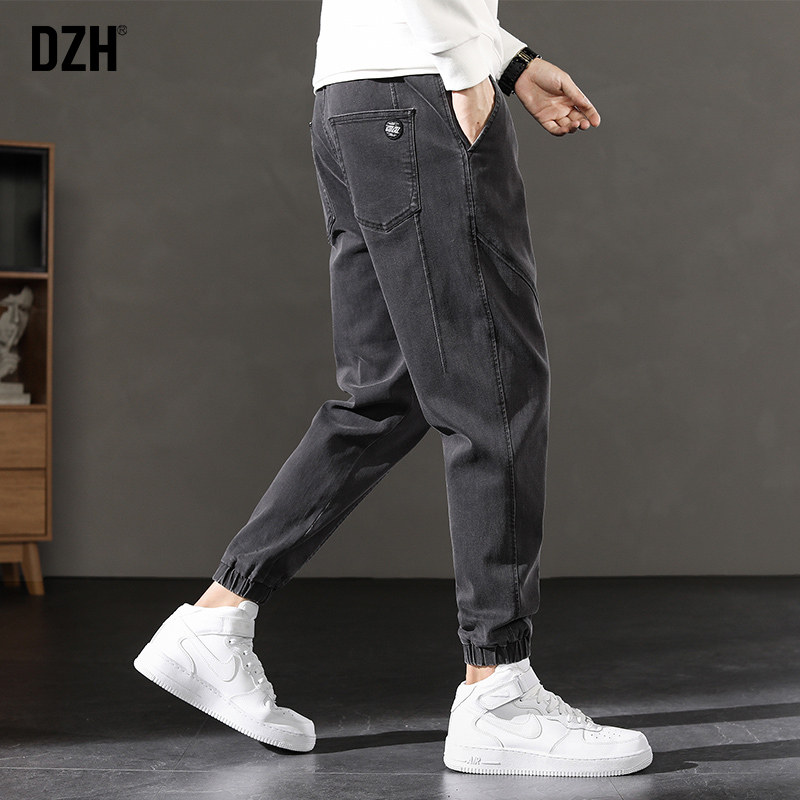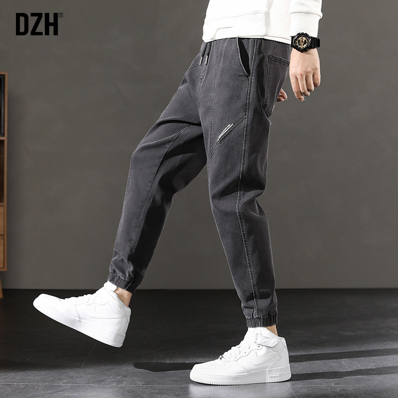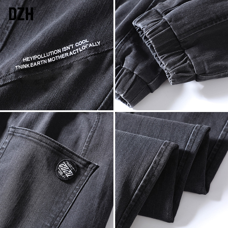 DZH Черные эластичные весенние джинсы, повседневные брюки, коллекция 2021, облегающий крой