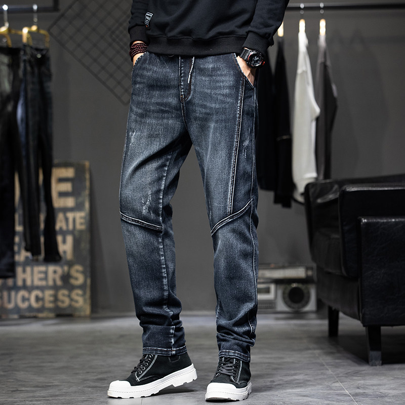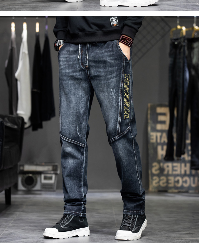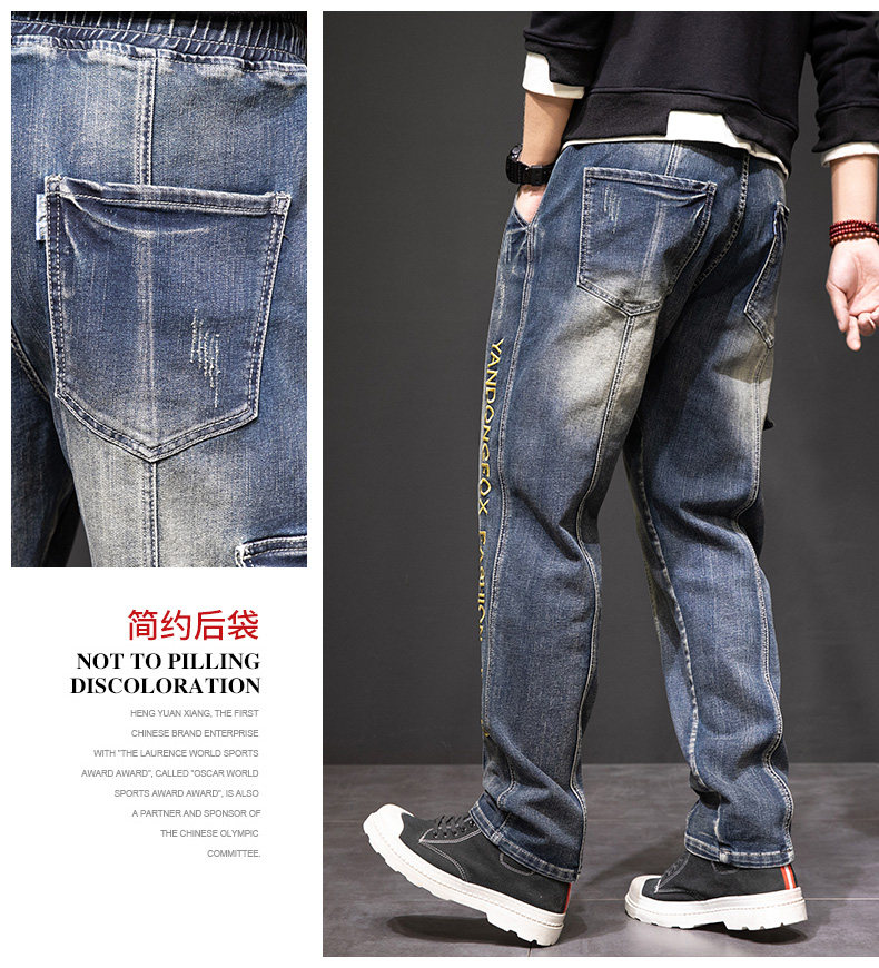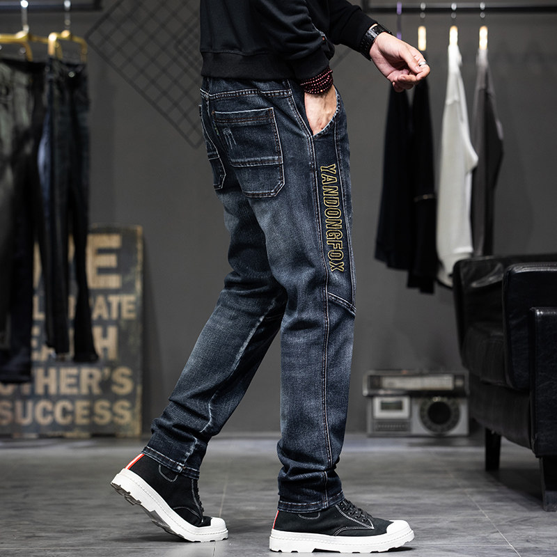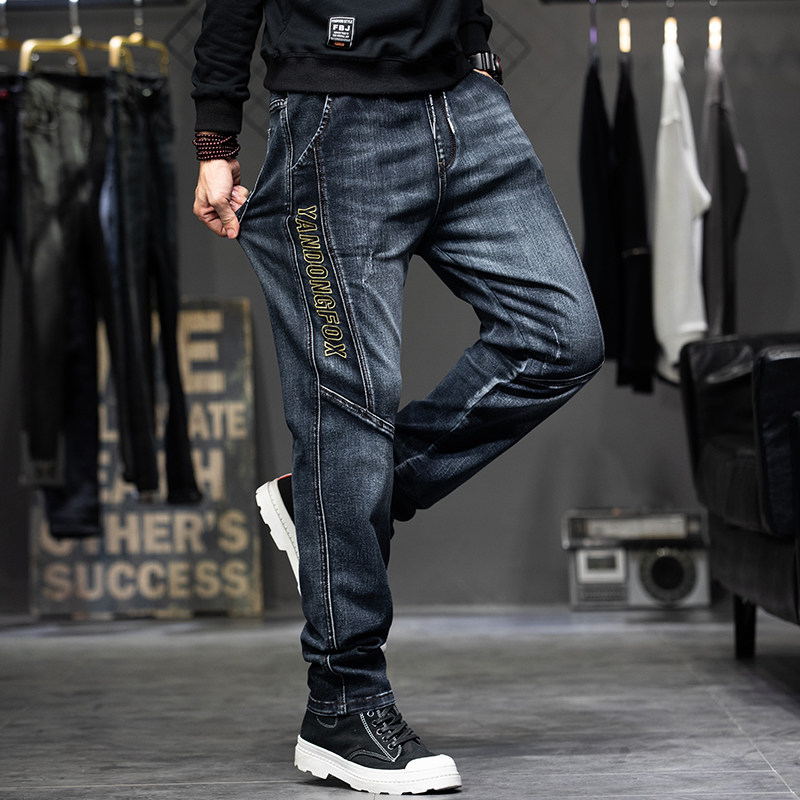 Демисезонные штаны, джинсы, коллекция 2023, с вышивкой, эластичная талия, оверсайз