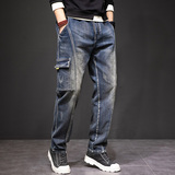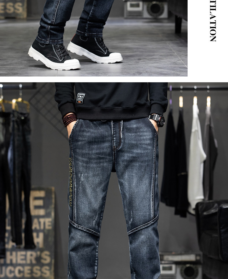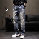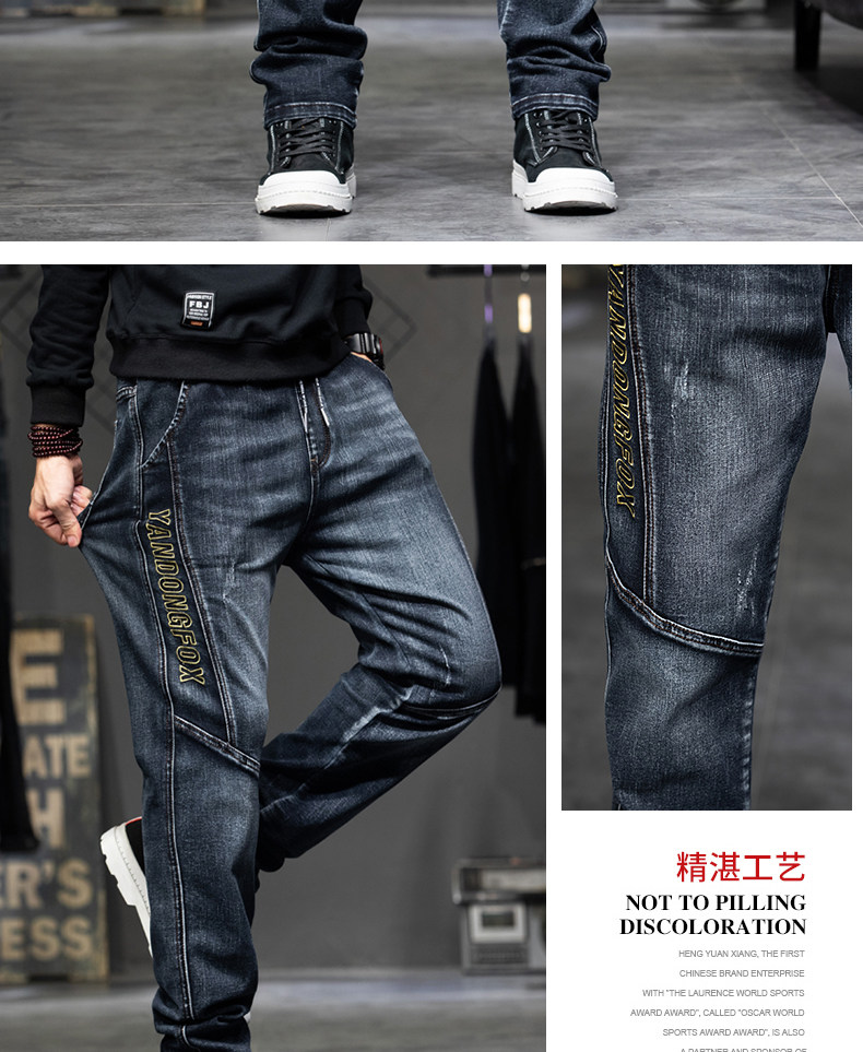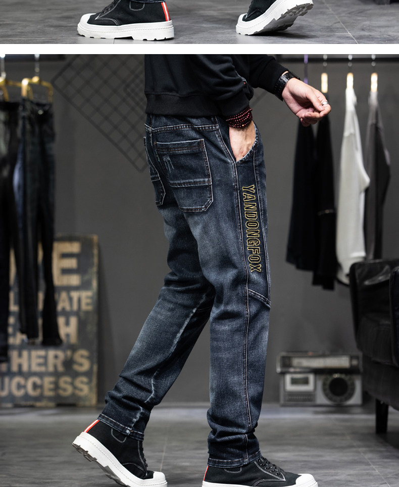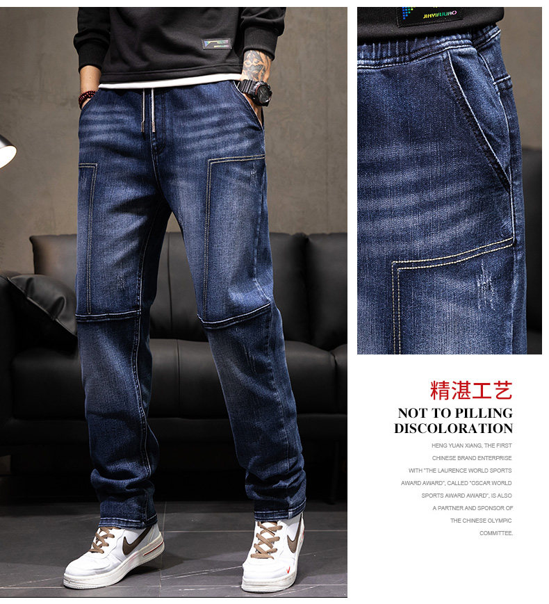 Демисезонные штаны, джинсы, коллекция 2023, с вышивкой, эластичная талия, оверсайз