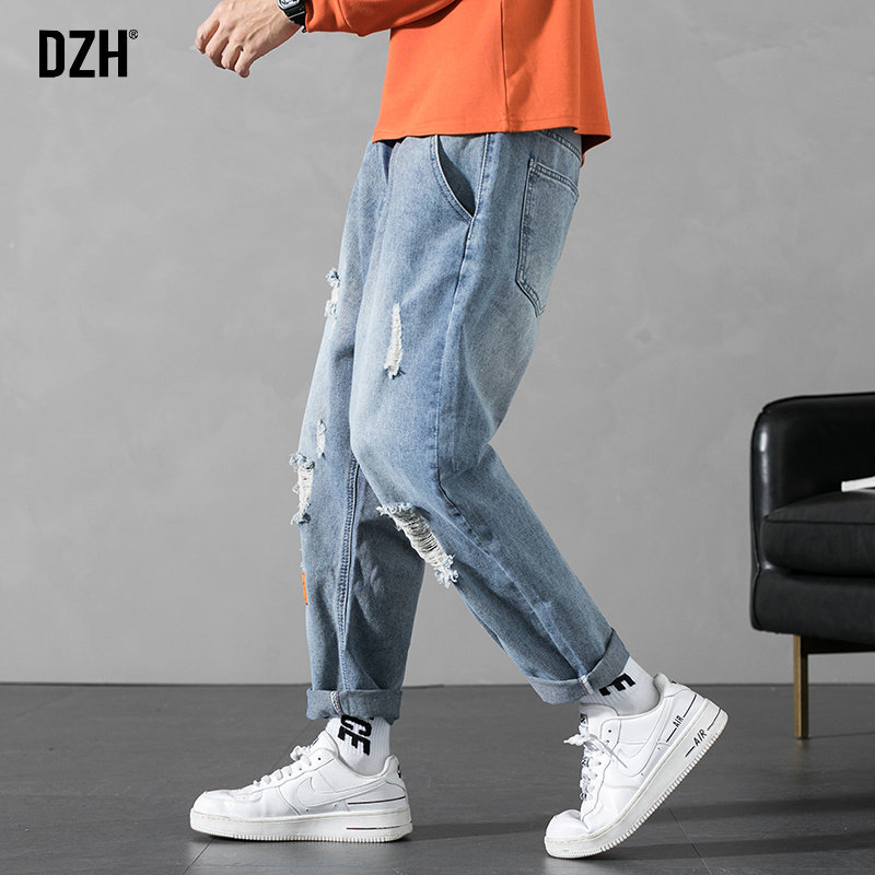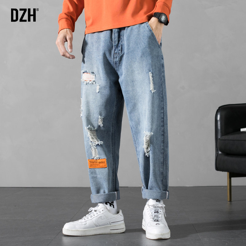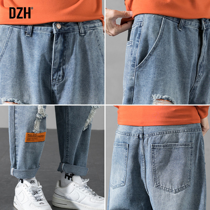 Весенние синие прямые свободные джинсы для отдыха, трендовые джинсовые штаны, оверсайз