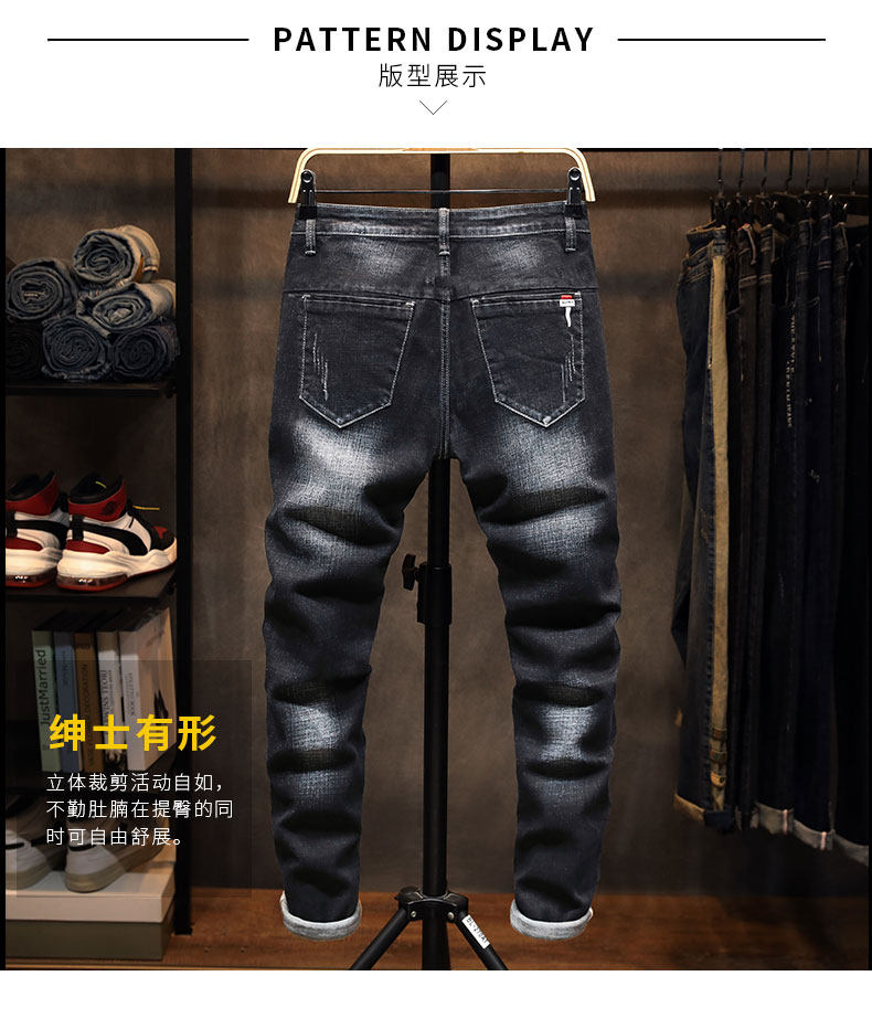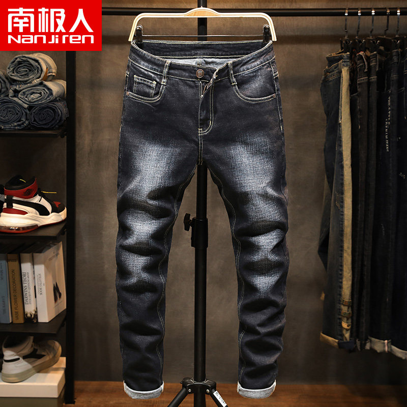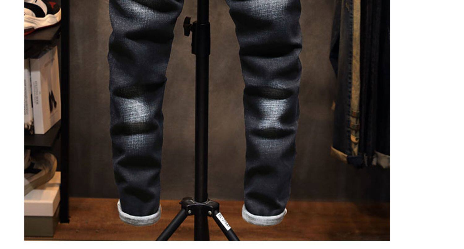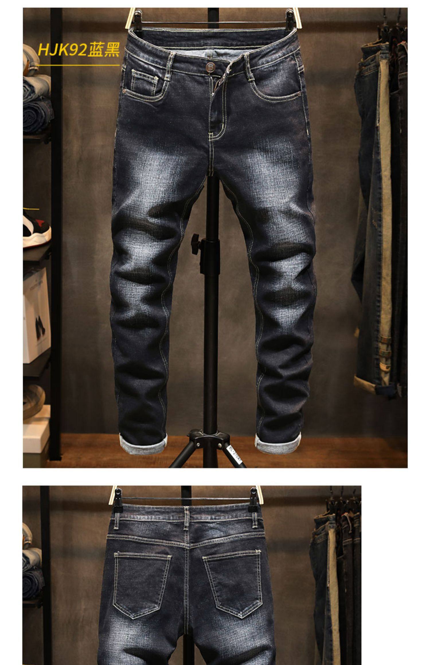 Демисезонные черные джинсы, эластичные штаны, свободный прямой крой, в корейском стиле