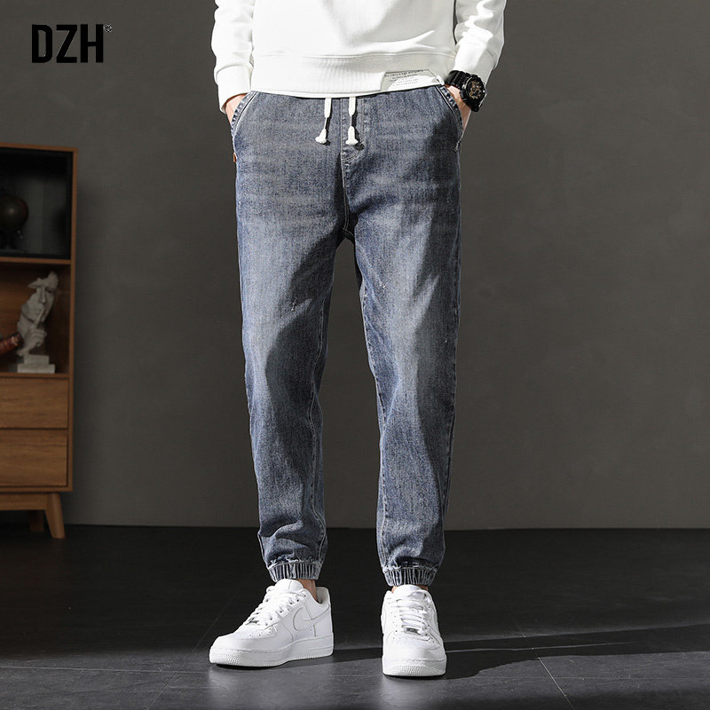 Демисезонные штаны, синие трендовые джинсы, универсальные повседневные брюки, в корейском стиле