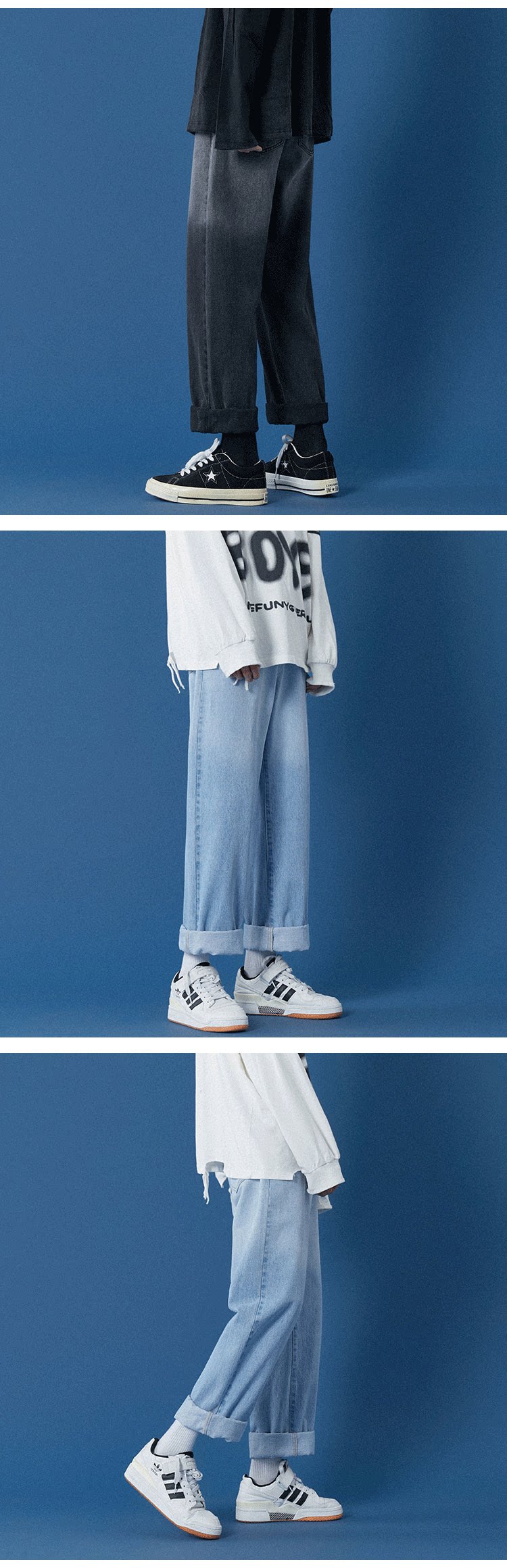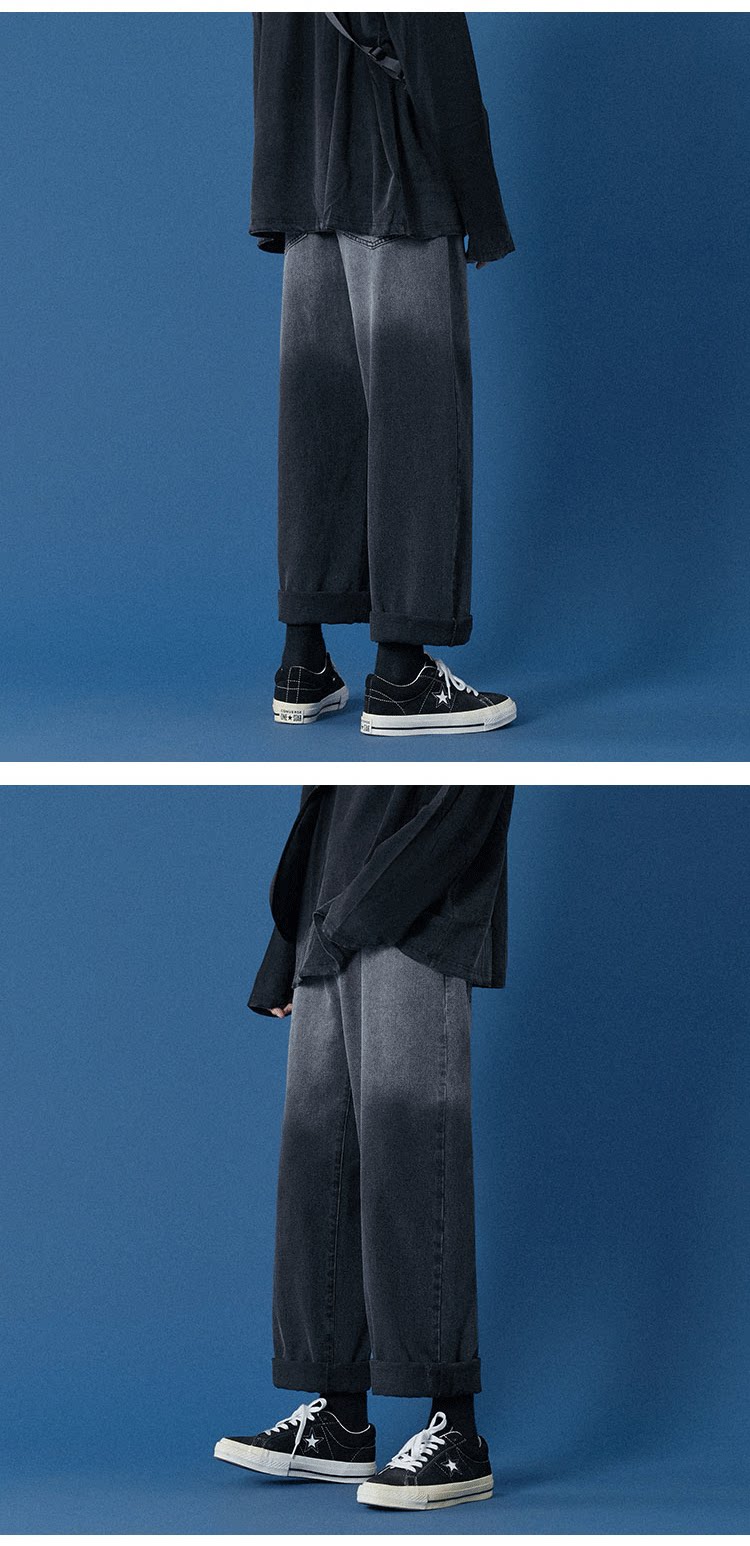 Осенние джинсы, трендовые штаны для отдыха, свободный прямой крой, в корейском стиле, градиент