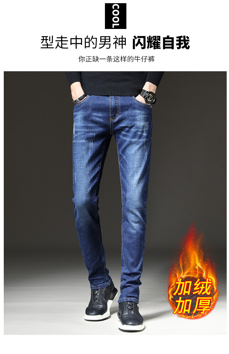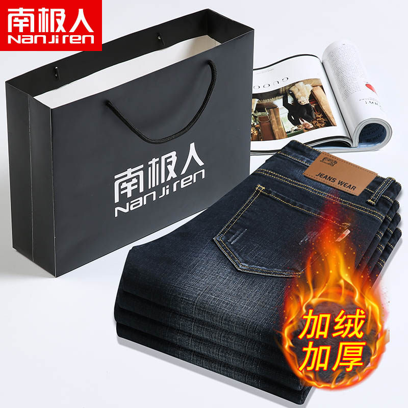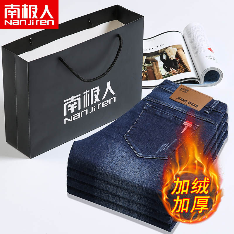 南极人 Утепленные джинсы с начесом, джинсовые штаны, увеличенная толщина, свободный прямой крой