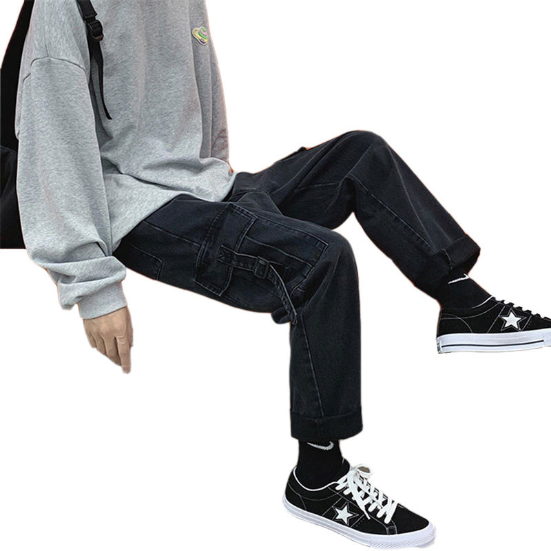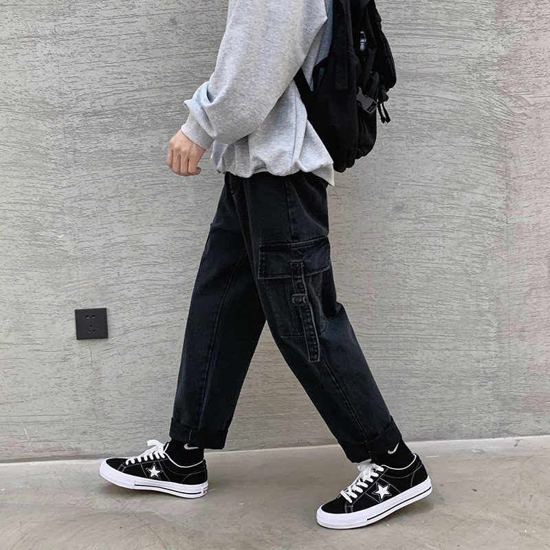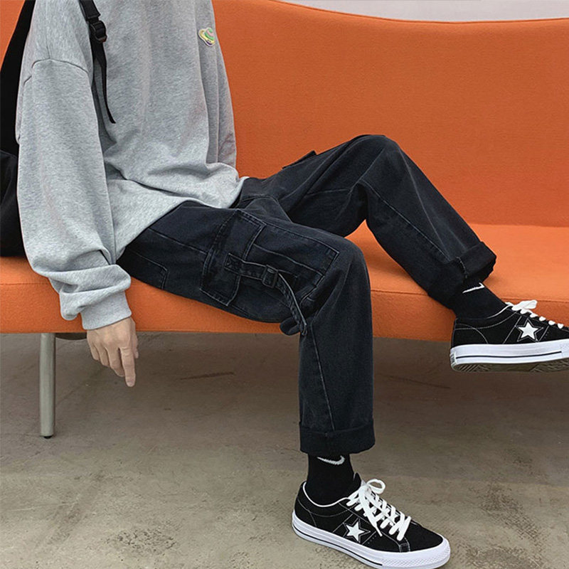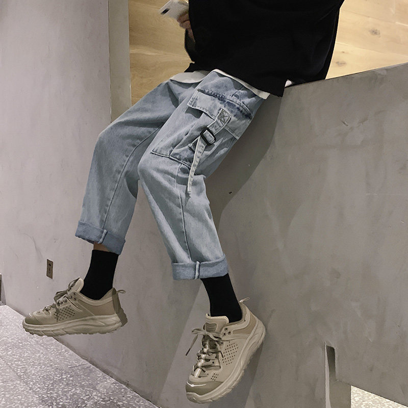 Джинсы, ретро трендовые штаны, 2020, осенние, свободный прямой крой, в корейском стиле, оверсайз