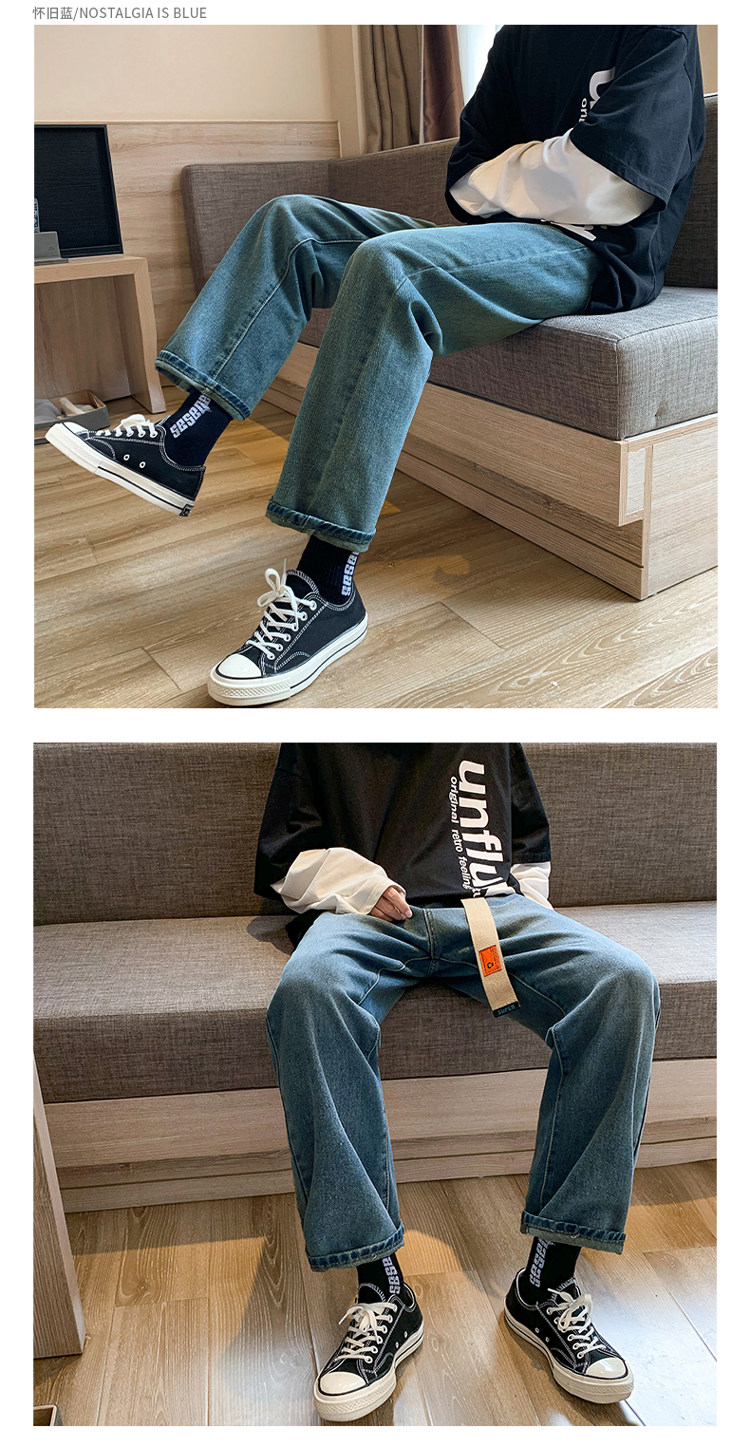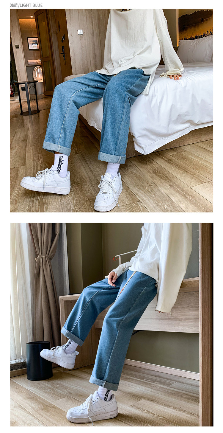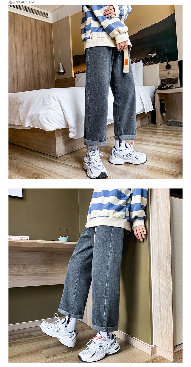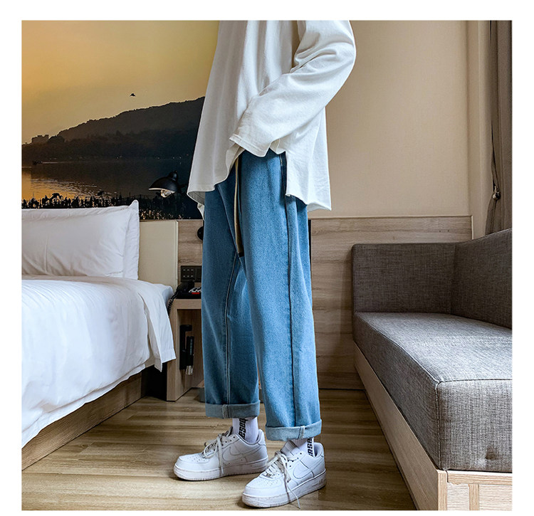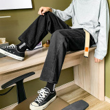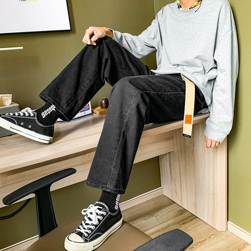 Осенние трендовые джинсы, однотонные штаны для отдыха, свободный прямой крой, в корейском стиле