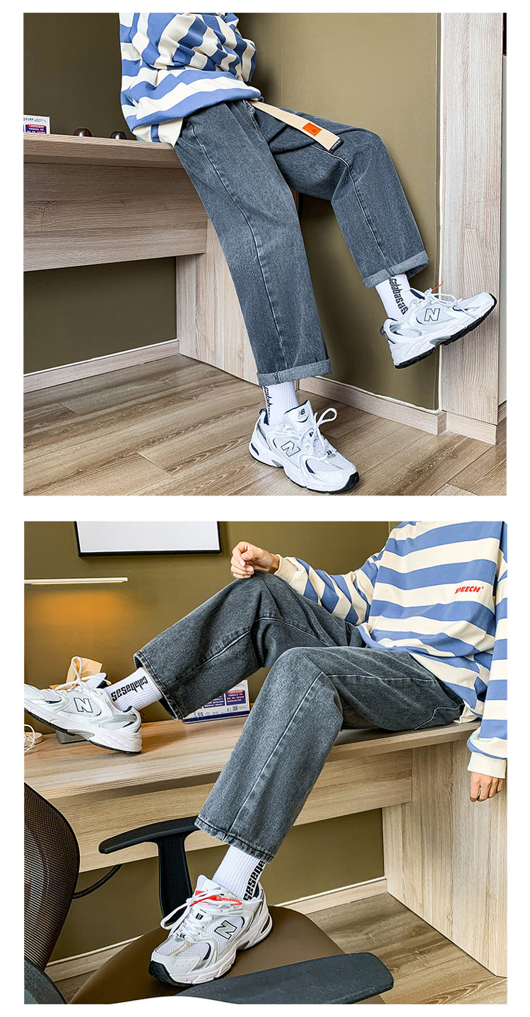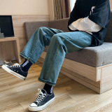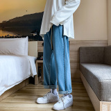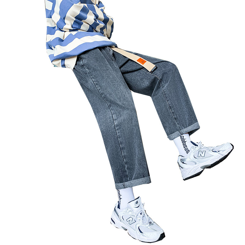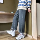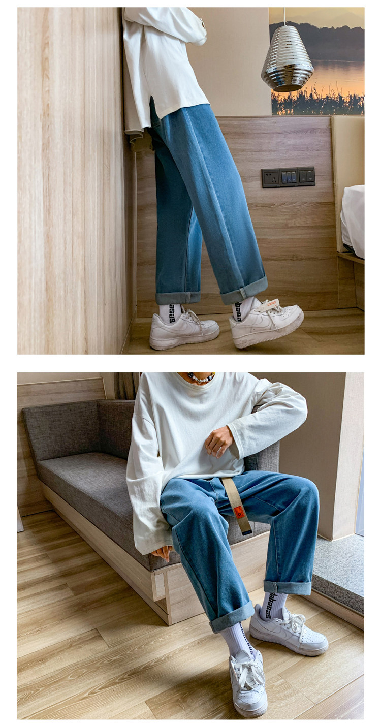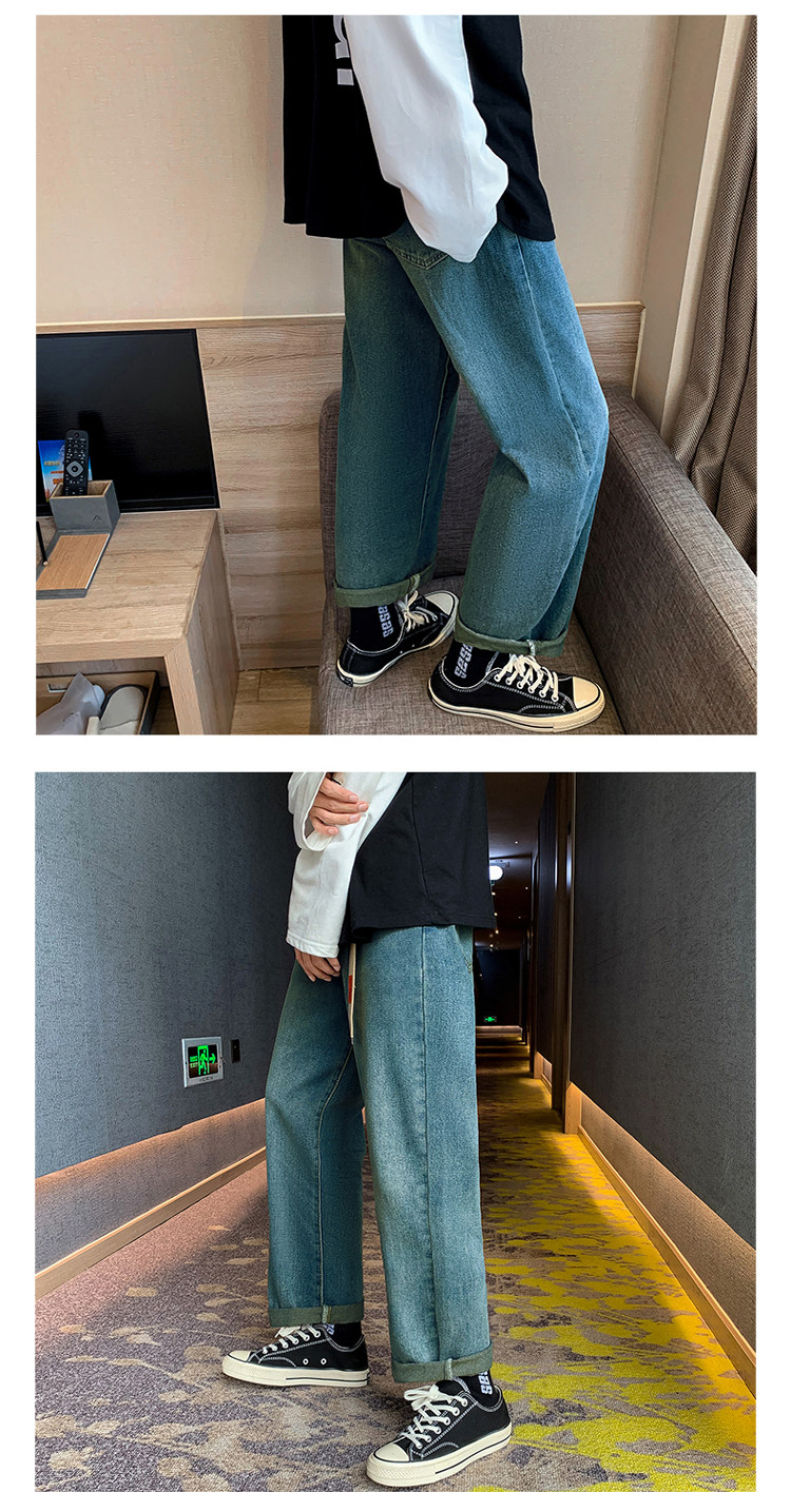 Осенние трендовые джинсы, однотонные штаны для отдыха, свободный прямой крой, в корейском стиле