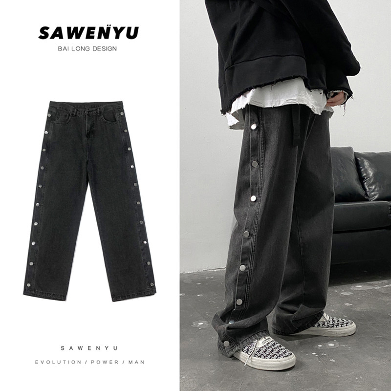 Джинсы в стиле хип-хоп, трендовые штаны, свободный прямой крой, в корейском стиле, оверсайз