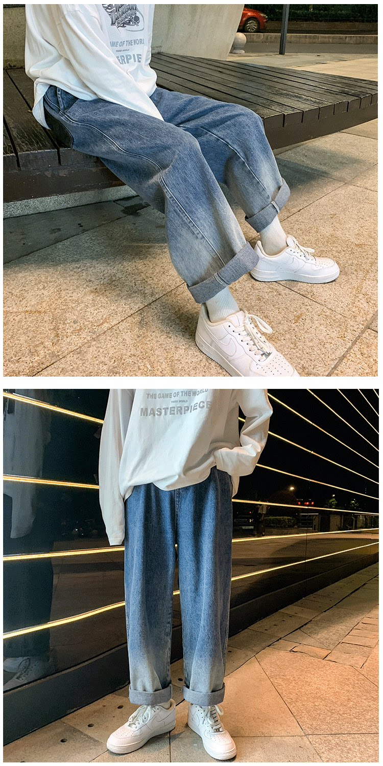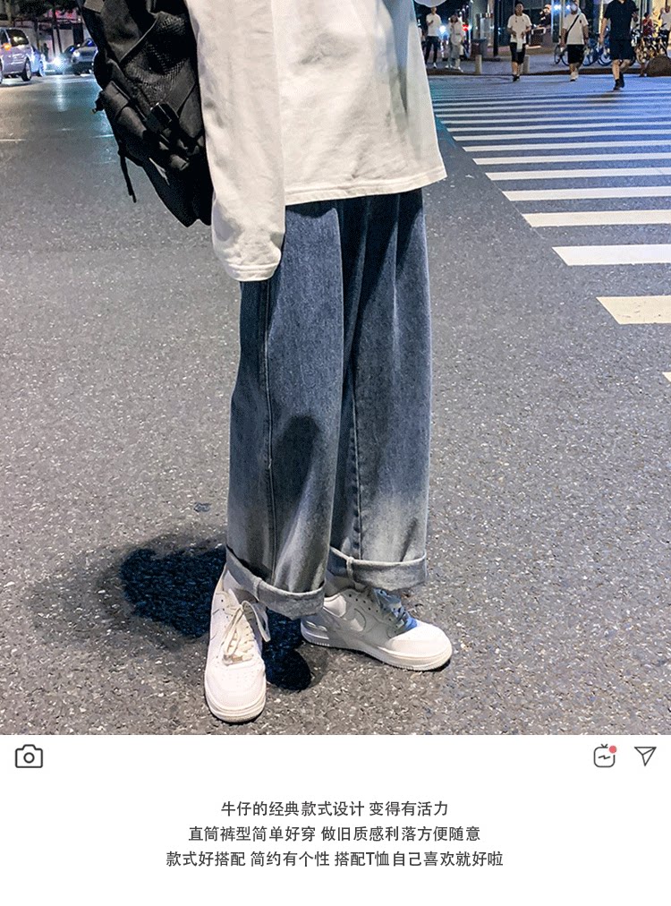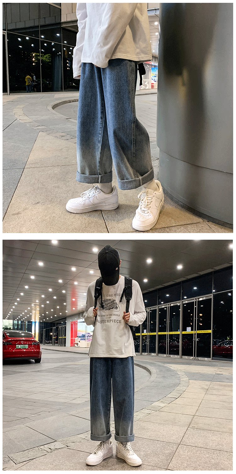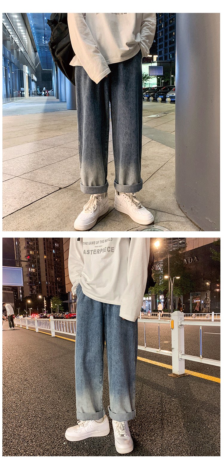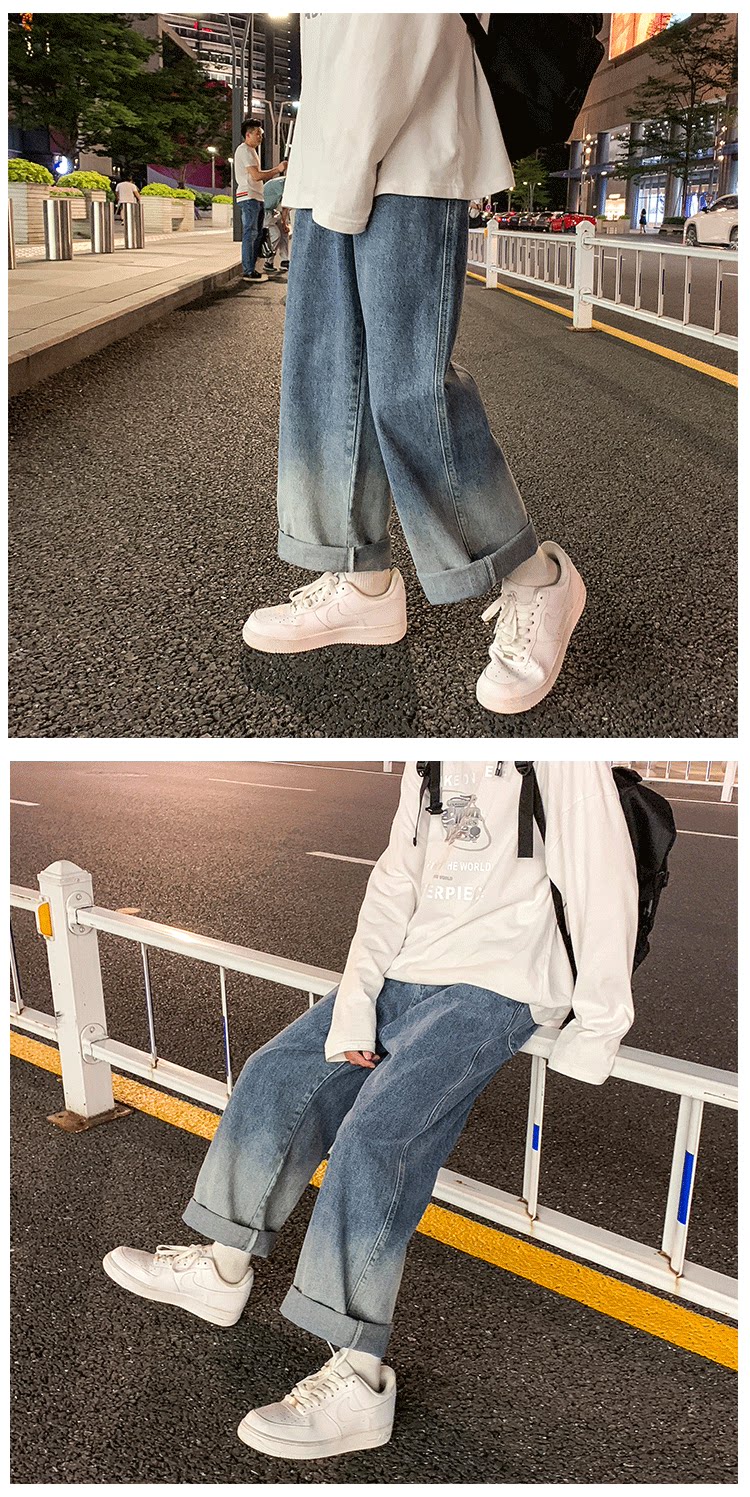 Tide, ретро джинсы, трендовые штаны, градиент, свободный прямой крой, оверсайз