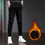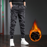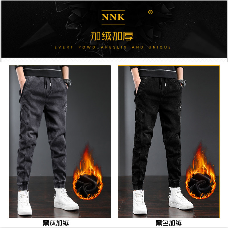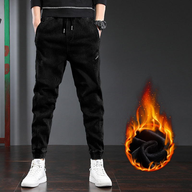 Джинсы с начесом, трендовые зимние штаны, оверсайз, на шнурках, свободный крой